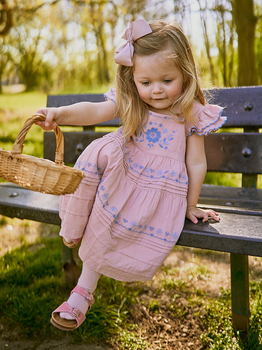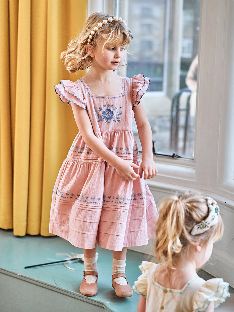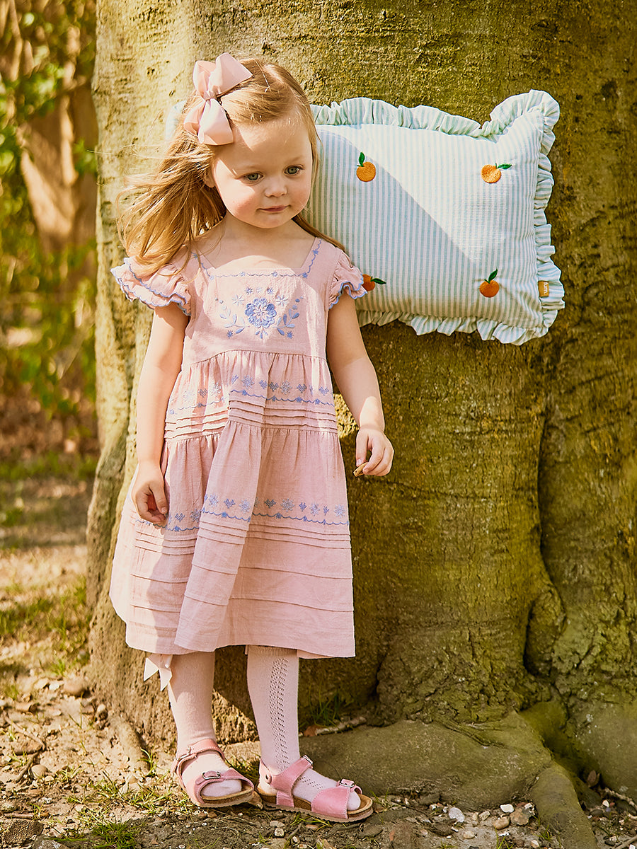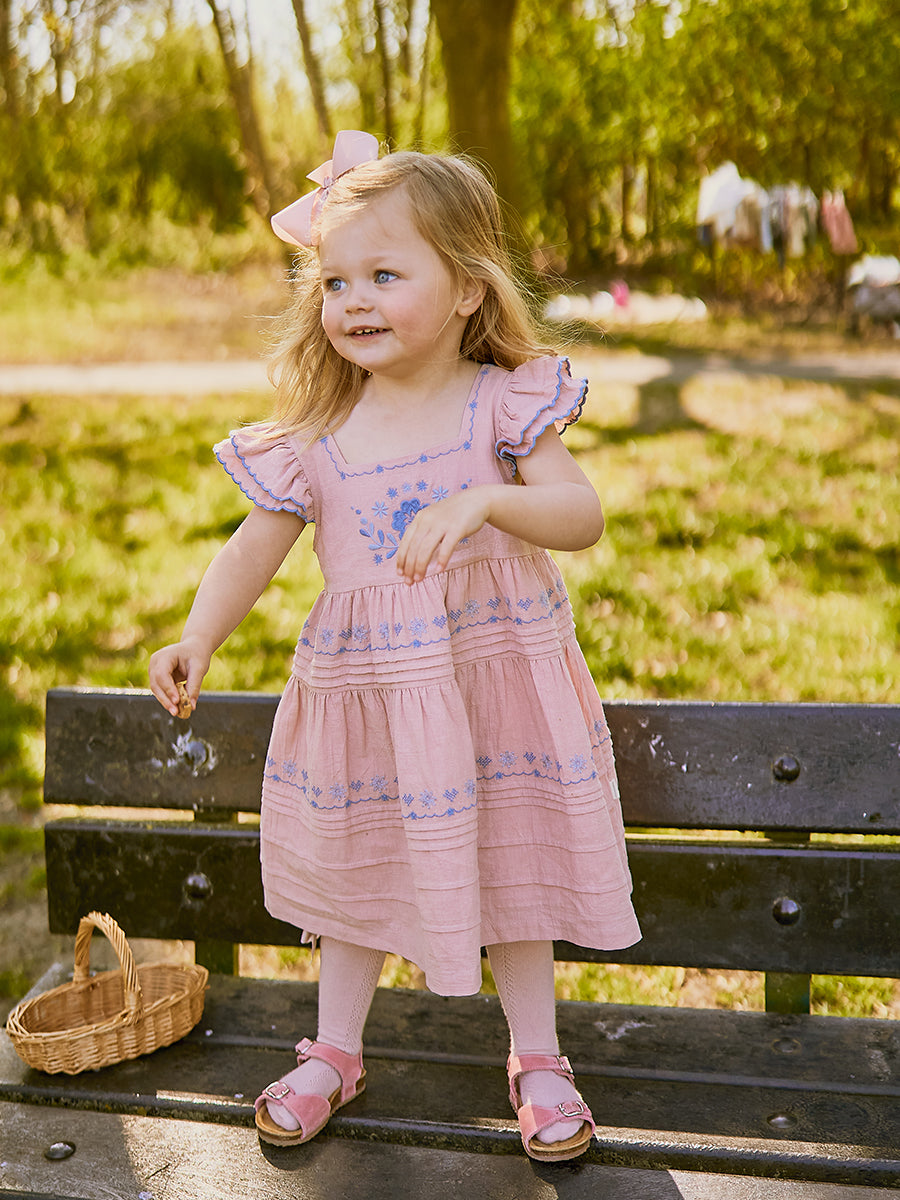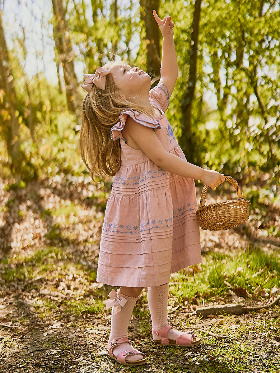 Palmeira Embroidered Dress, Grapefruit Pink