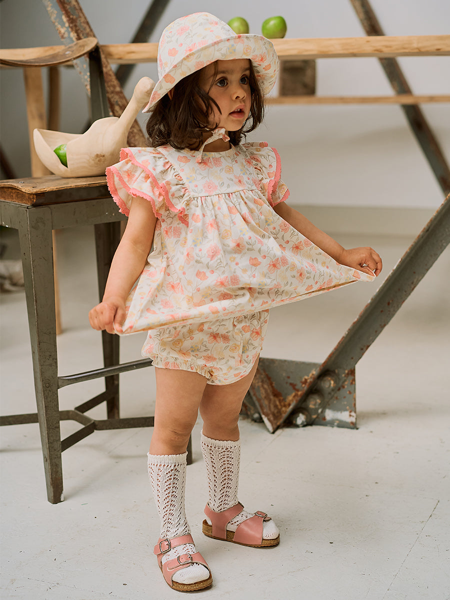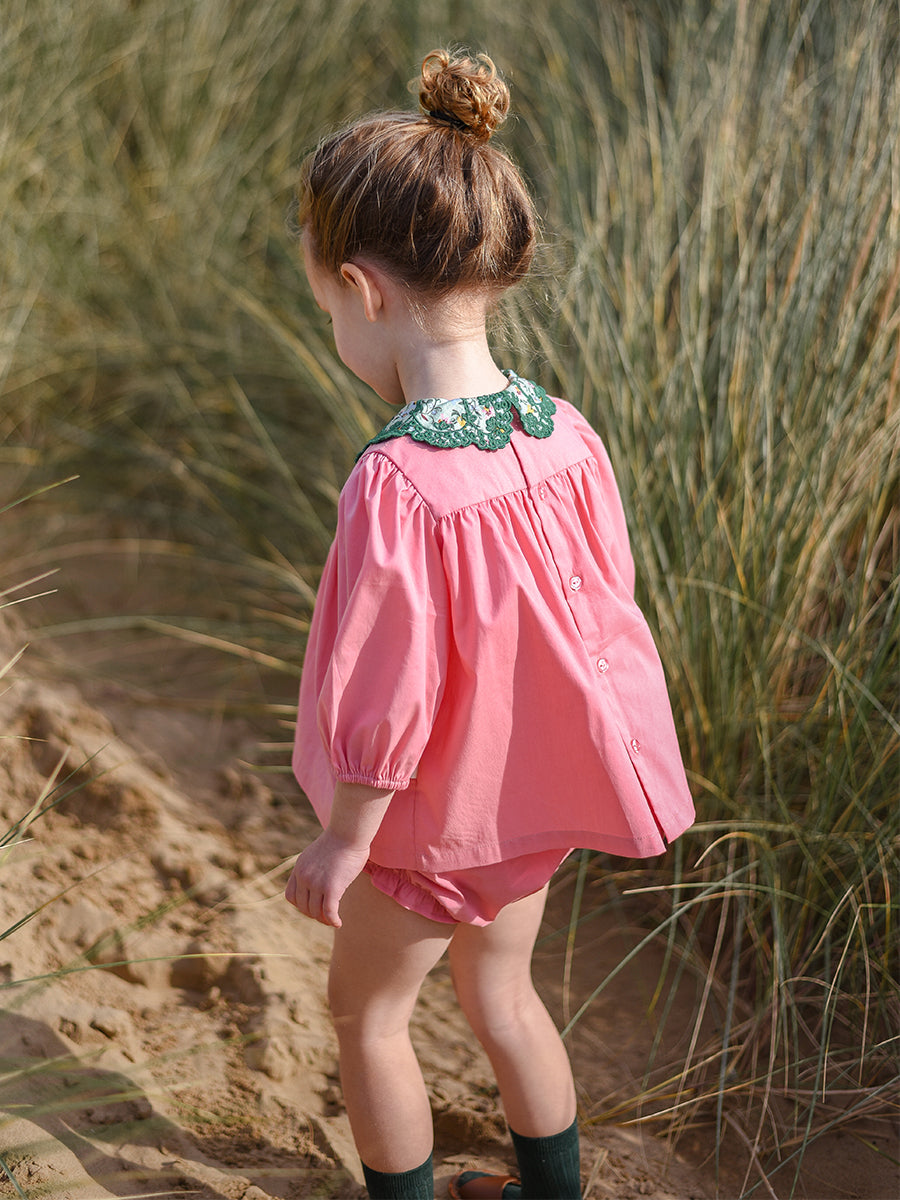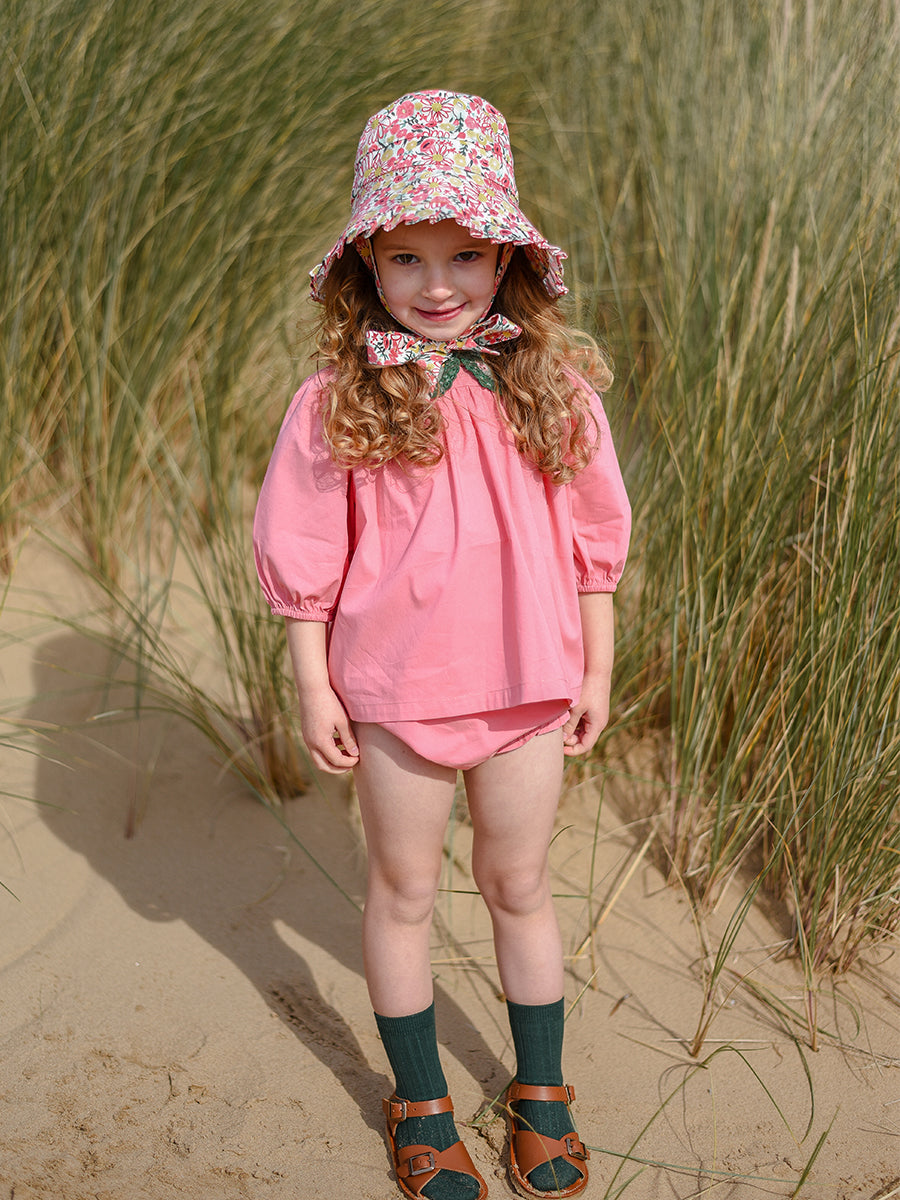 Luna Blouse and Bloomers Set, Strawberry Flower Field, Blush