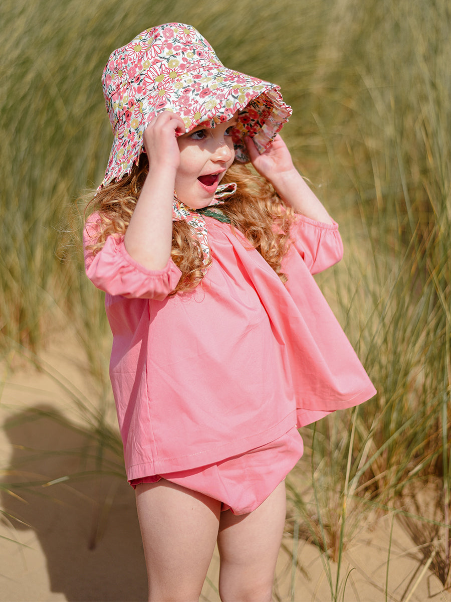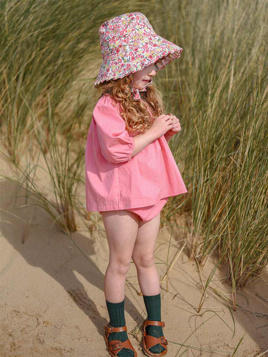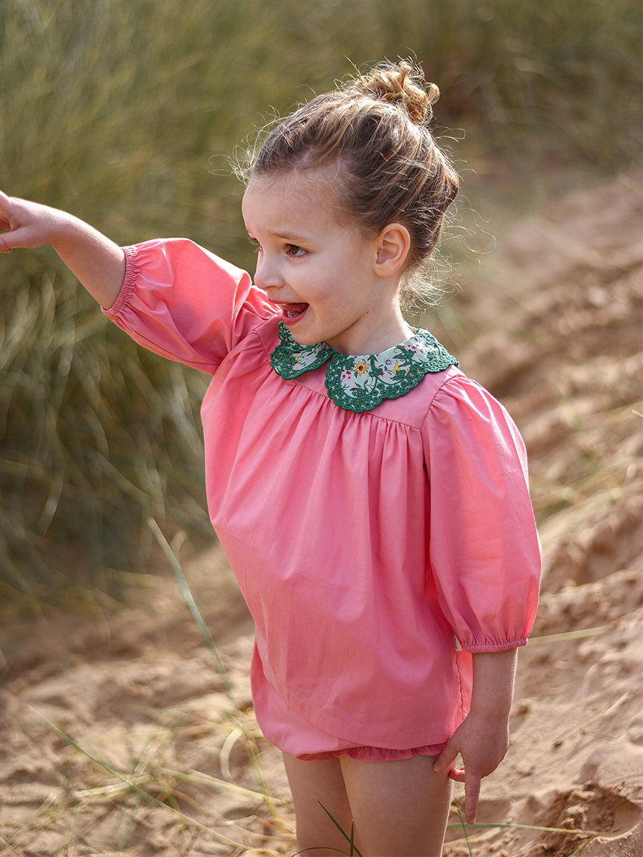 Luna Blouse and Bloomers Set, Strawberry Flower Field, Blush