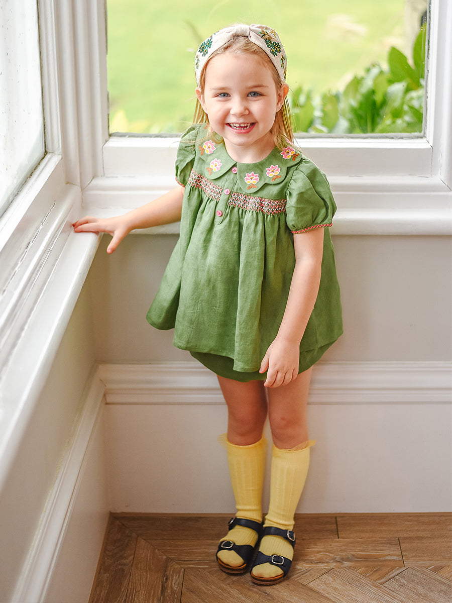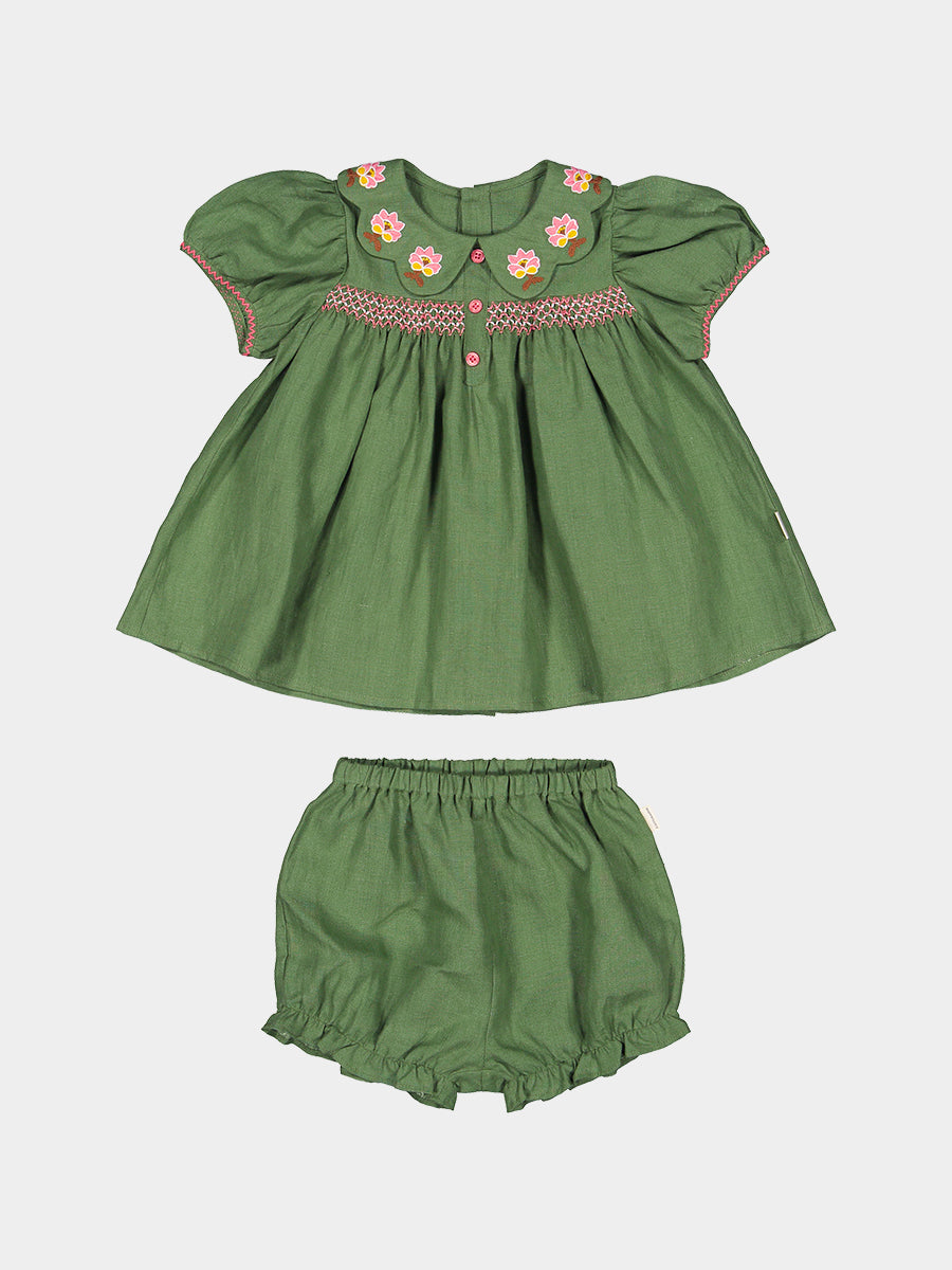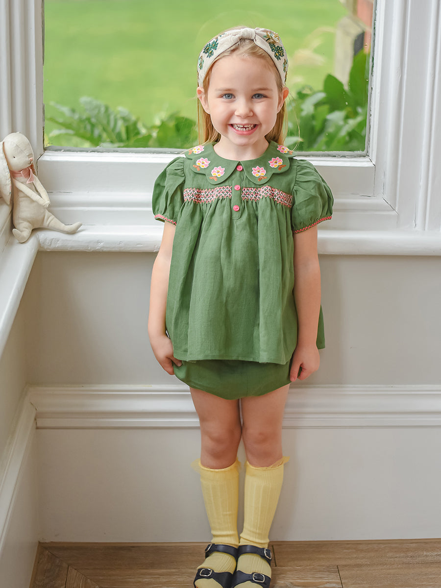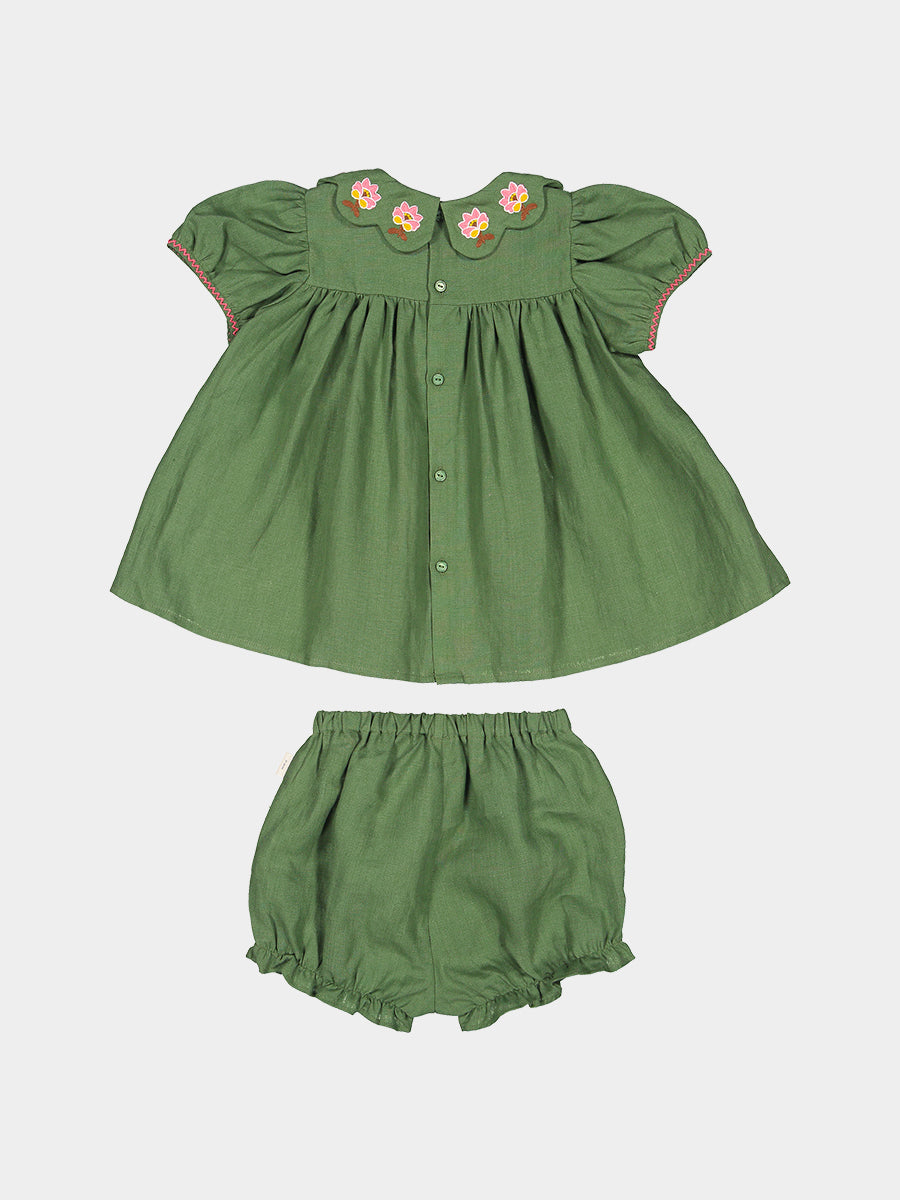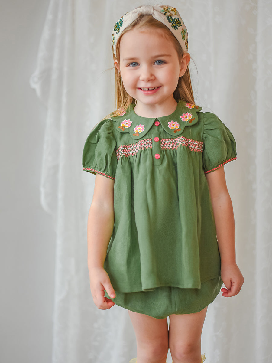 Ines 2-Piece Embroidered Top and Bloomers Set,Apple Green