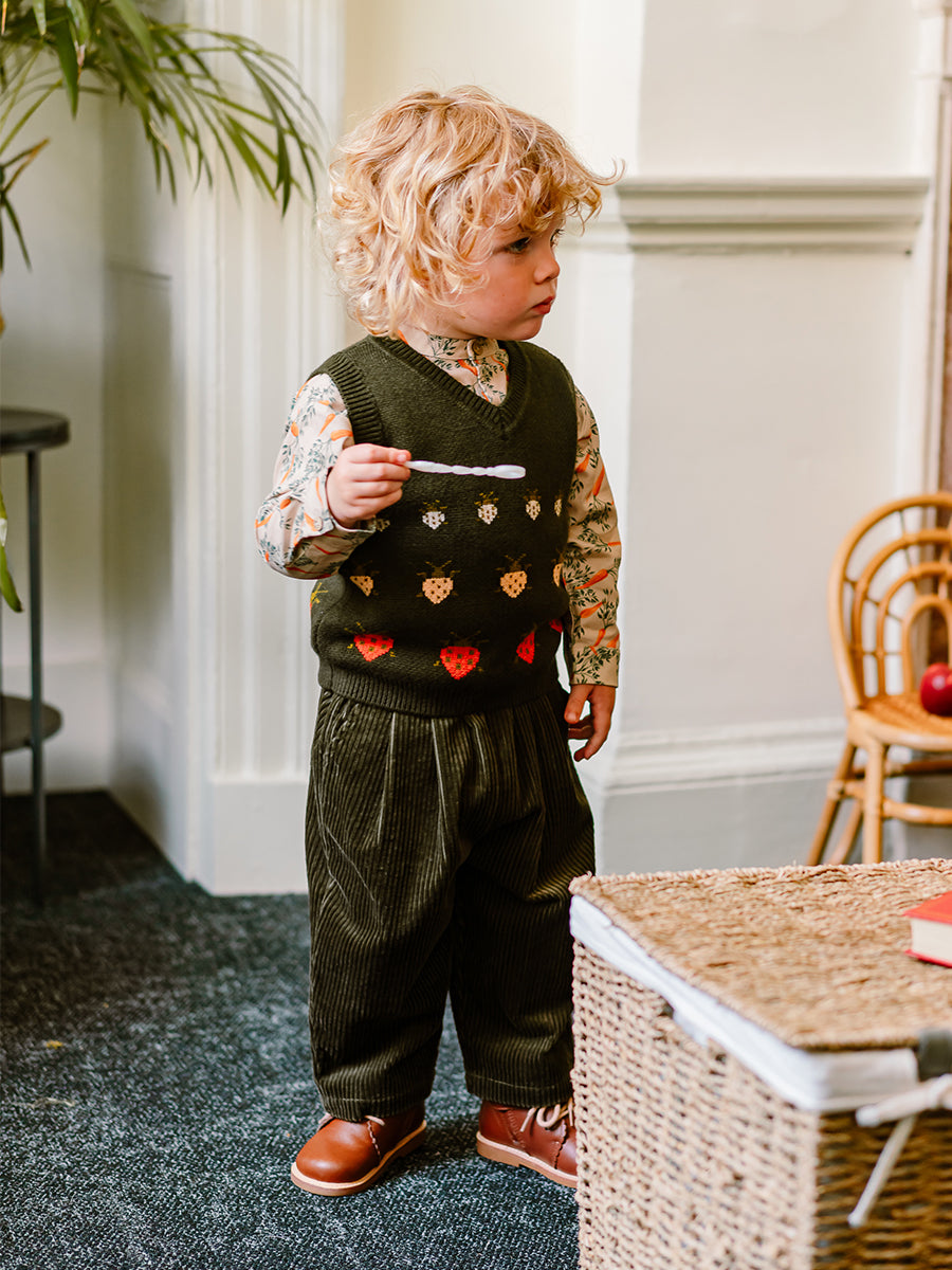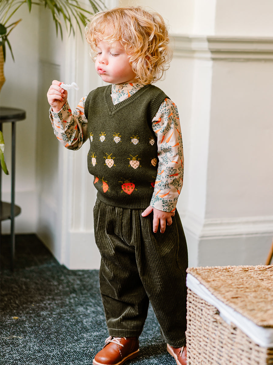 If you find yourself uncertain between two sizes, we always recommend opting for the larger size. Doing so allows your child to enjoy the clothing for a longer duration, ensuring maximum comfort and style.