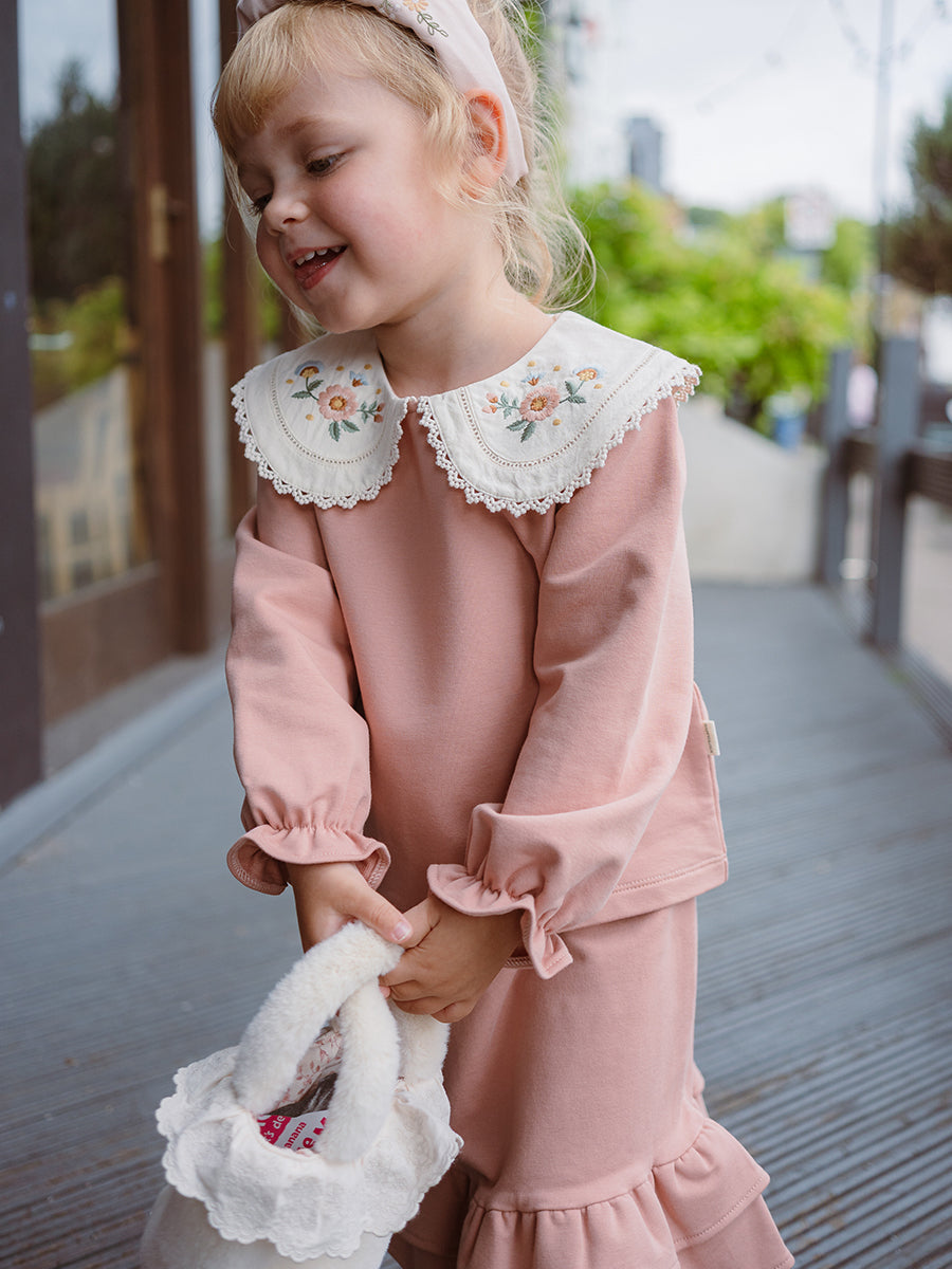 Laila Embroidered Dress, Strawberry Flower Field, Blush