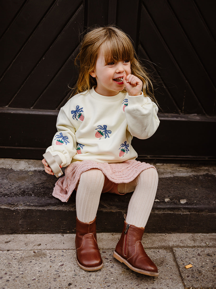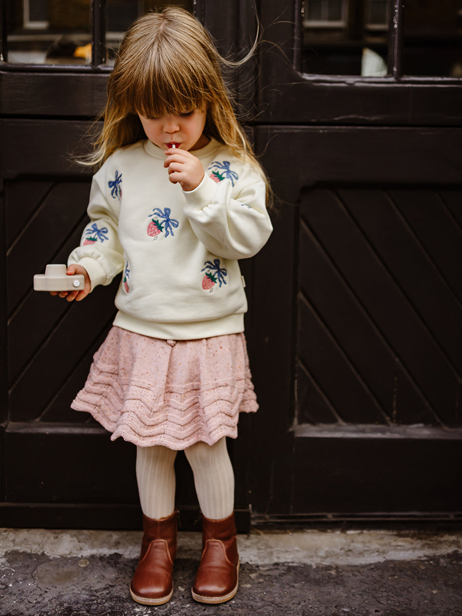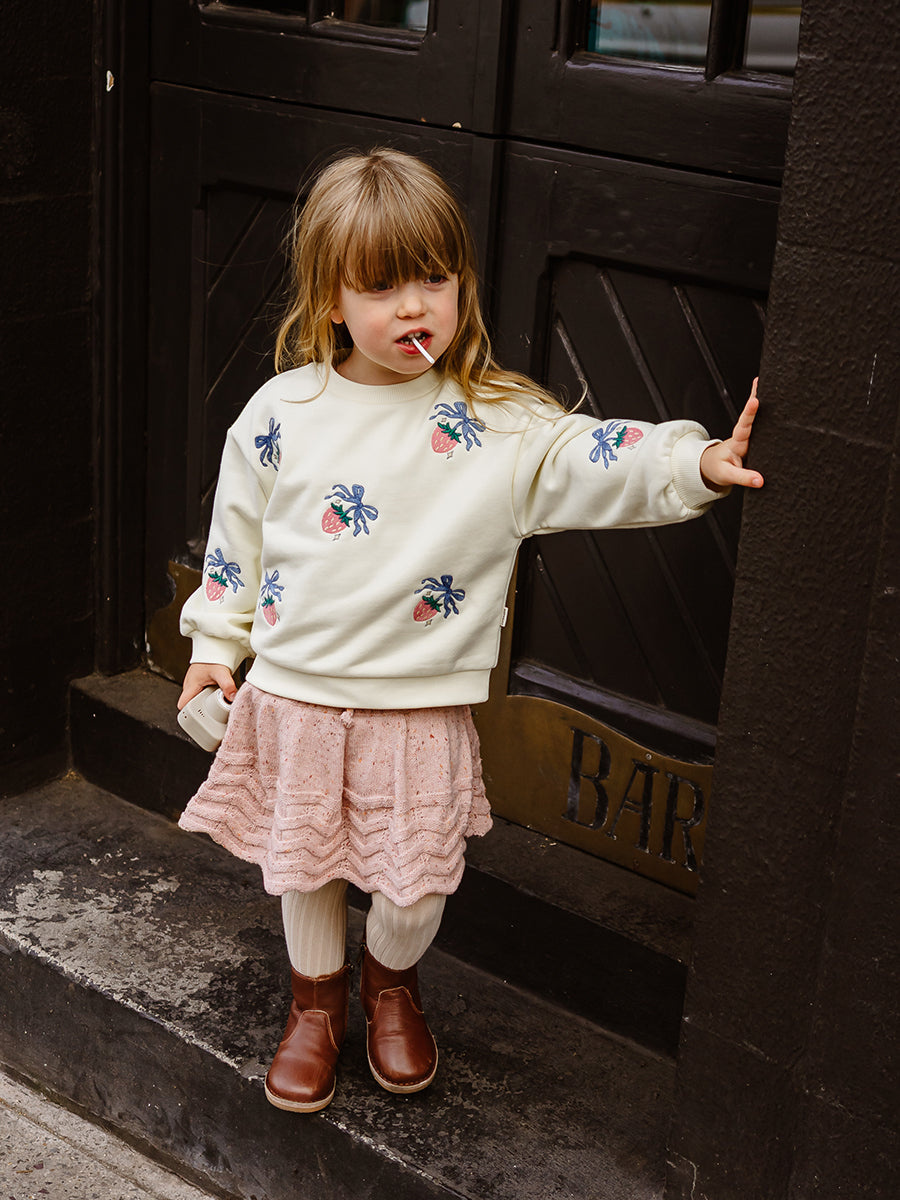Strawberry Hand-Embroidered Knitted Pants, Crème Brulee