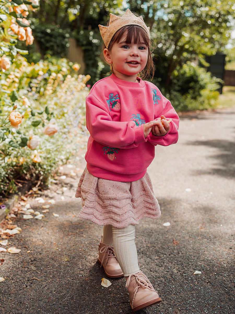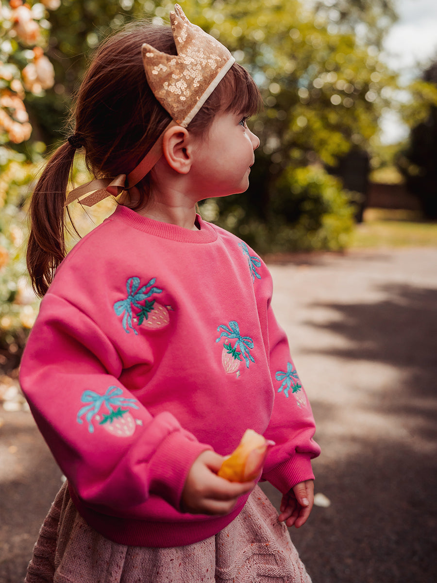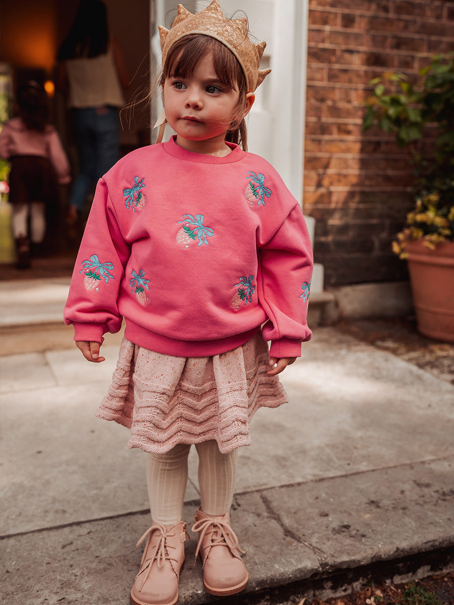 Strawberry Hand-Embroidered Cardigan, Princess Pink