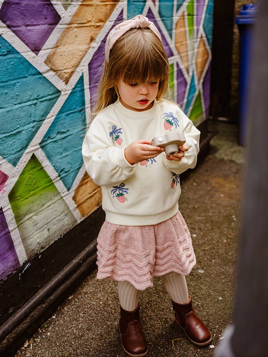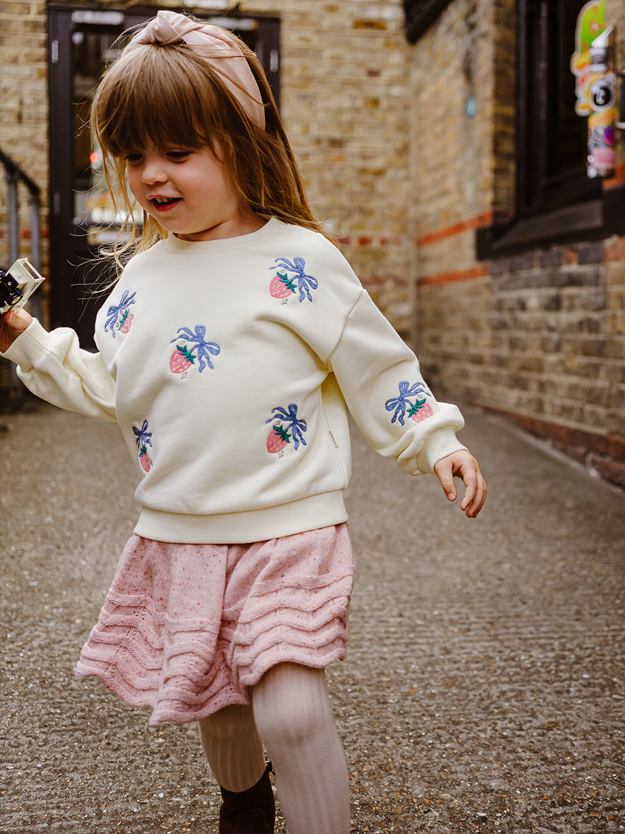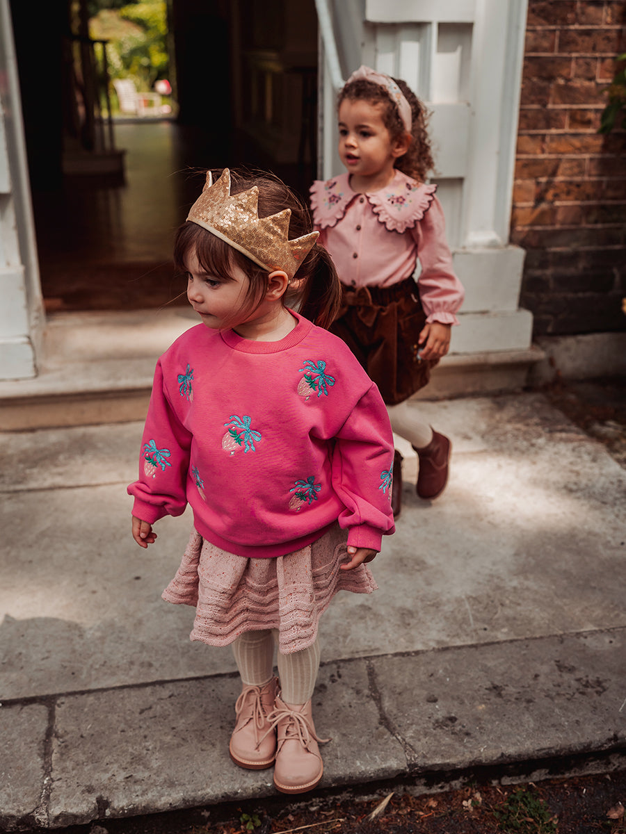 Strawberry Hand-Embroidered Cardigan, Princess Pink