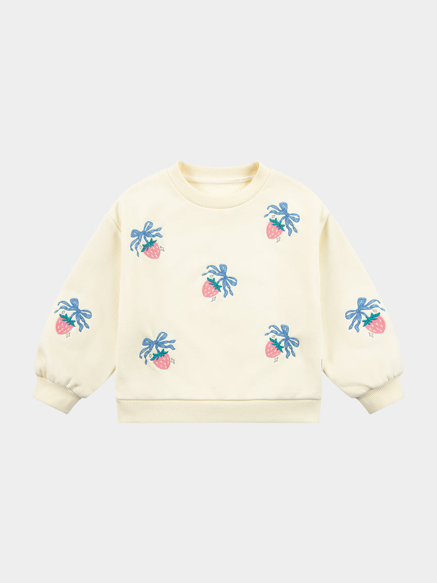 Strawberry Hand-Embroidered Cardigan, Crème Brulee