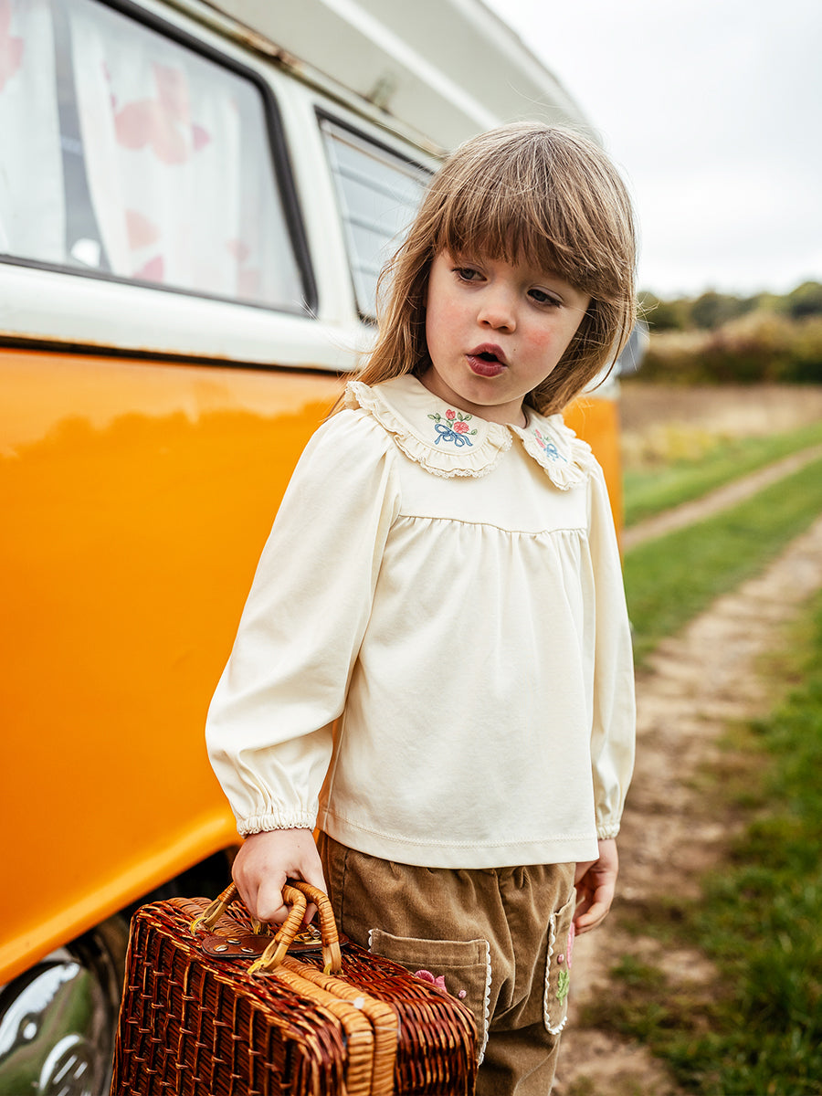 Bath Embroidered Jersey Top, Cream