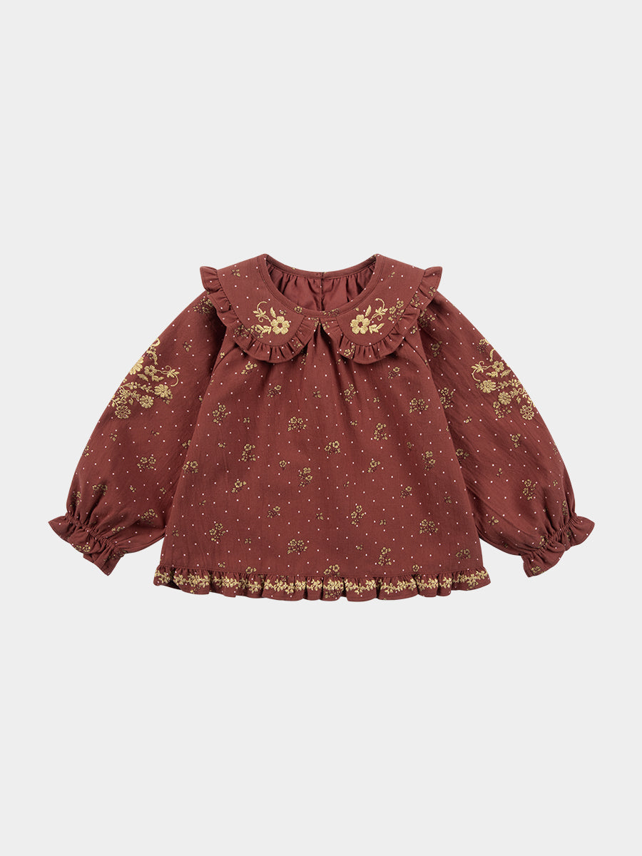 Karina Blouse, Wildflower Polka, Burgundy