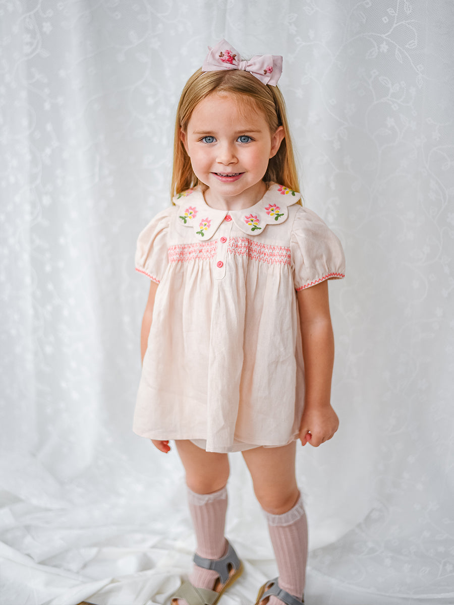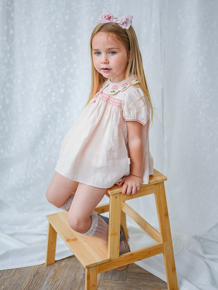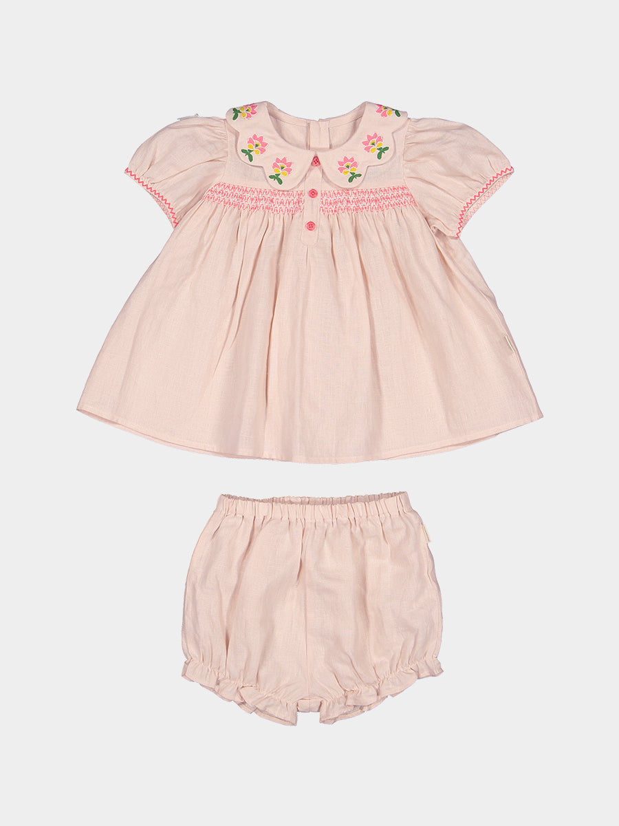 Ines 2-Piece Embroidered Top and Bloomers Set,Pearl Pink