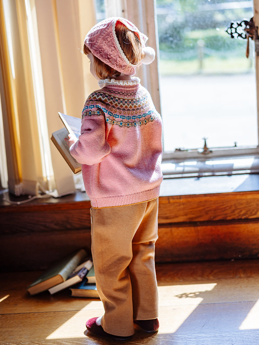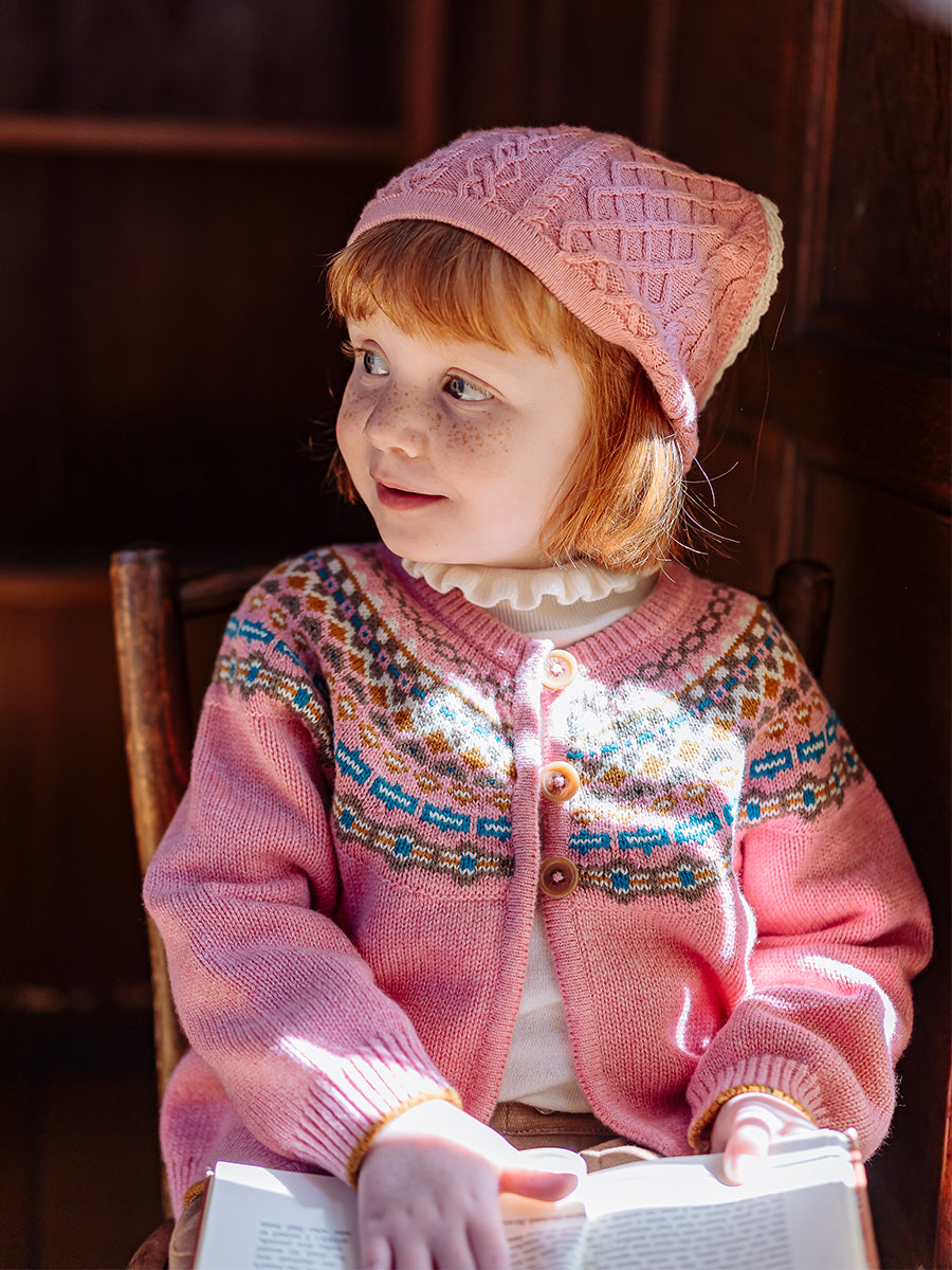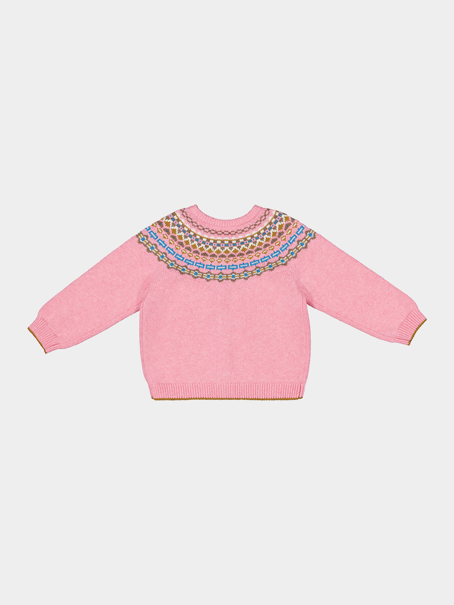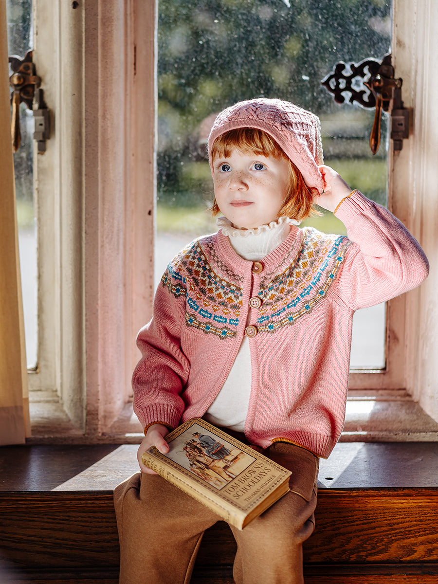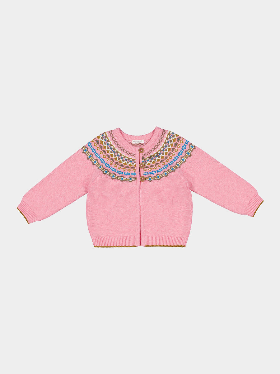 Aubrey Fair Isle Cardigan, Rose Pink Fair Isle