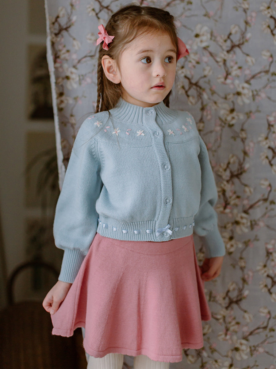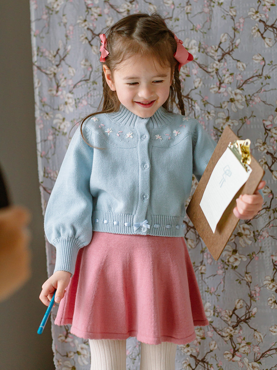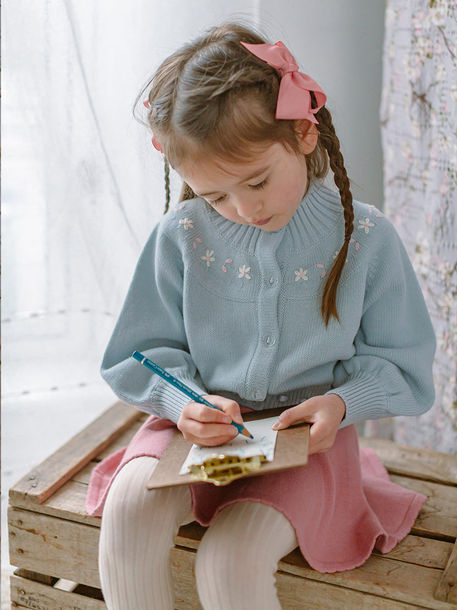 Sandringham Embroidered Cardigan, Soda Blue