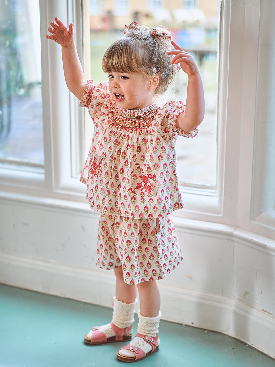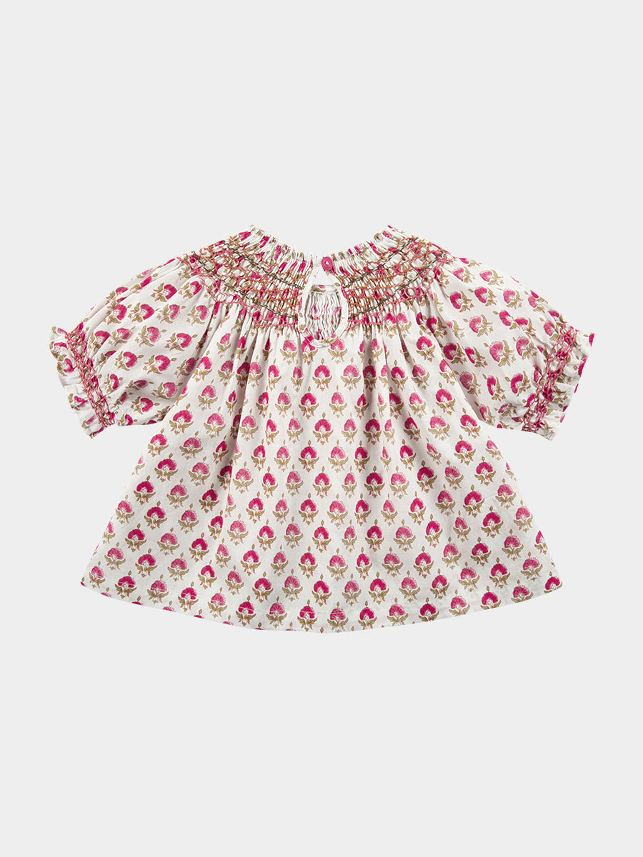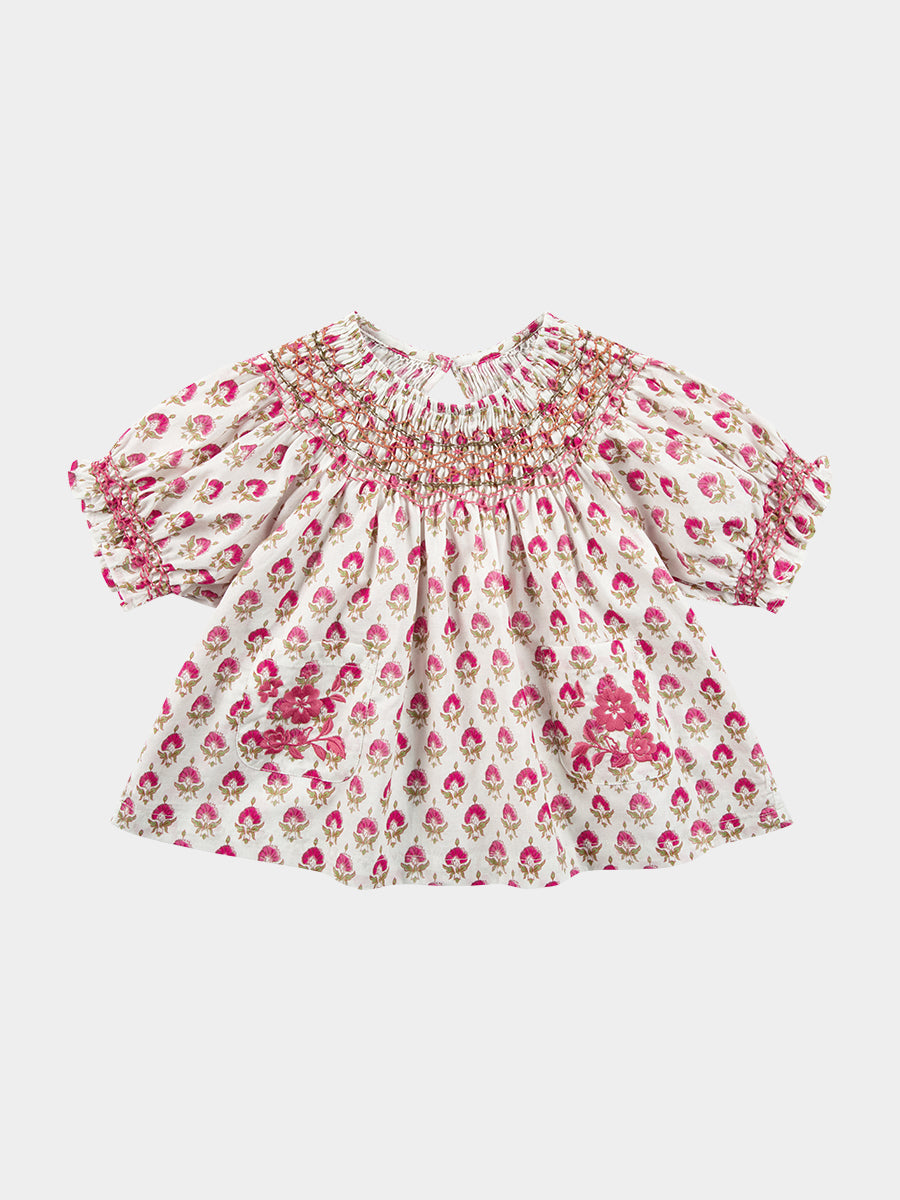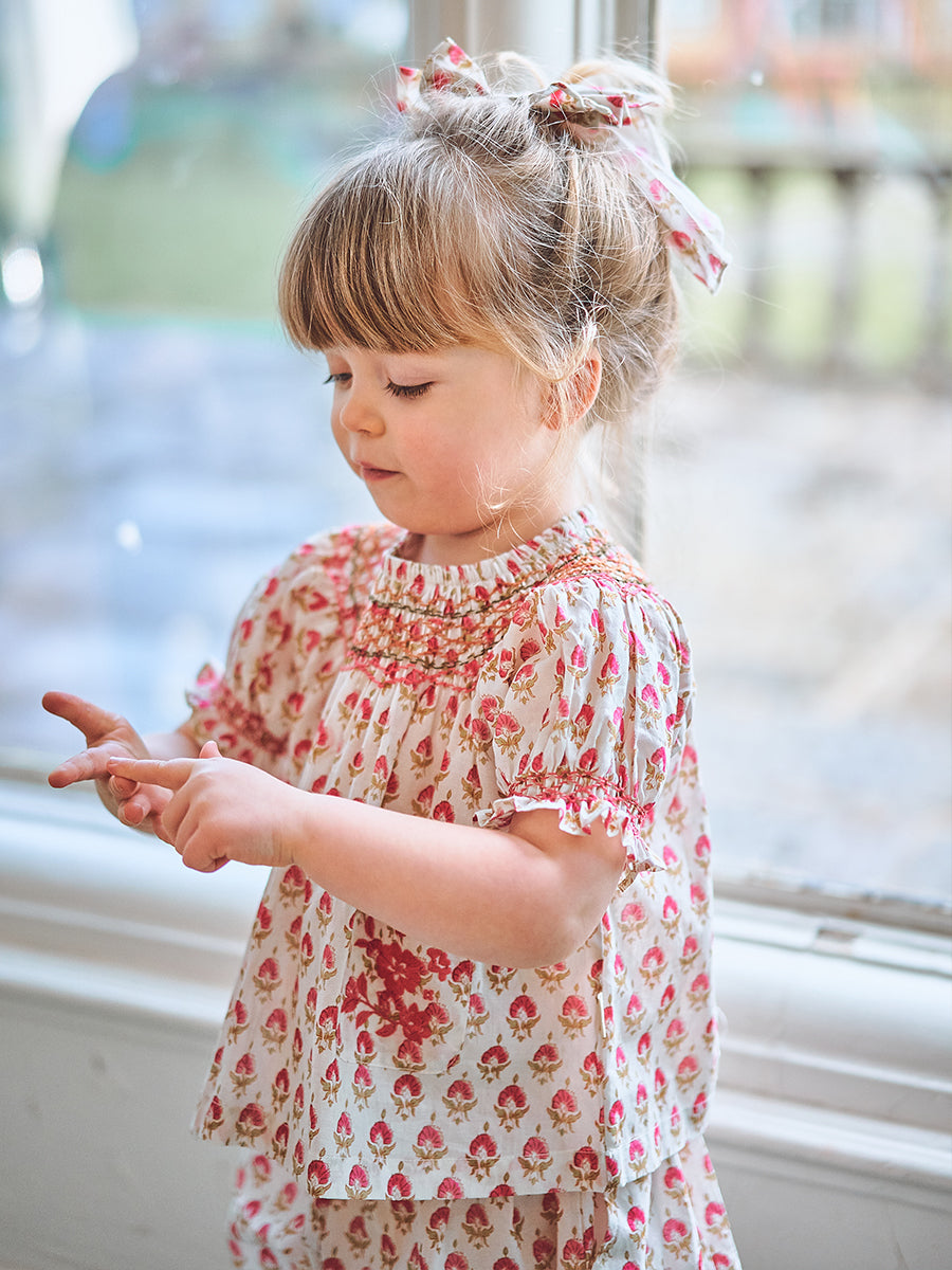 Kiera Hand Smocked Blouse, Printed Rosa White