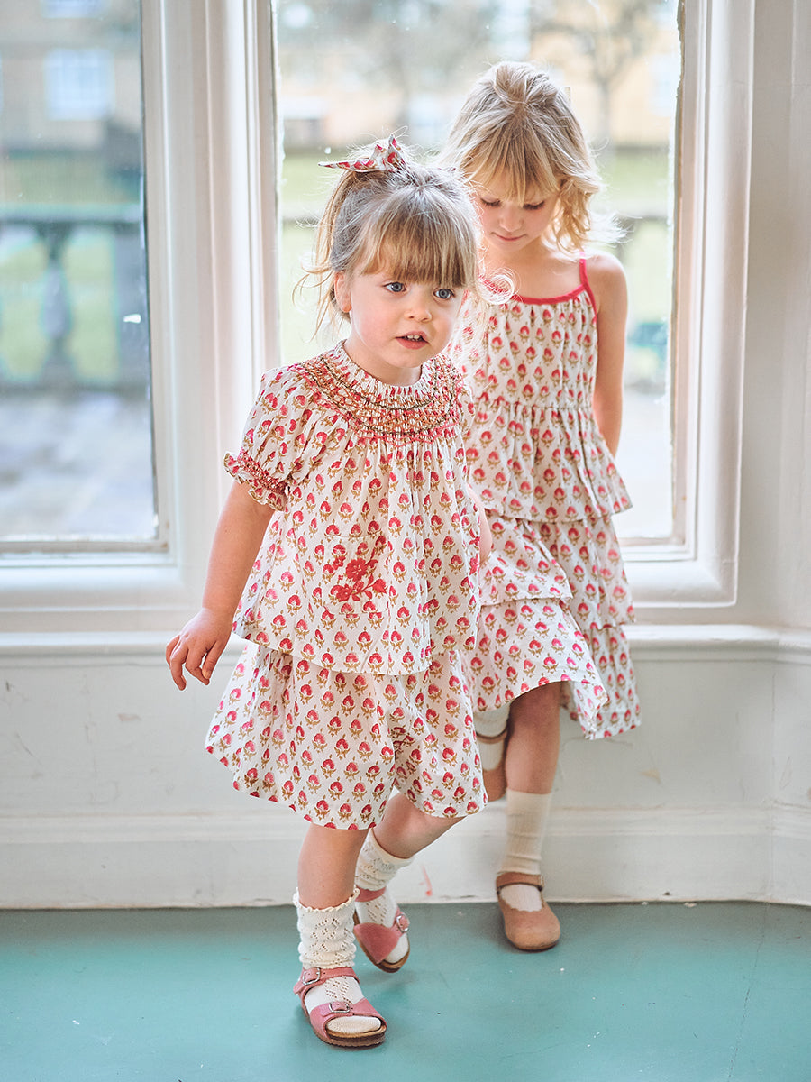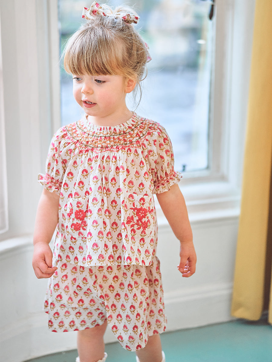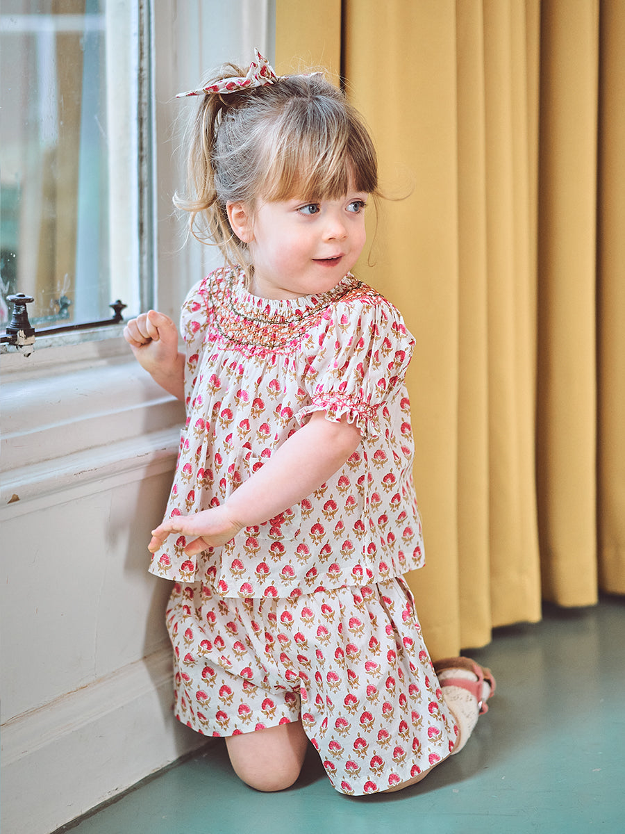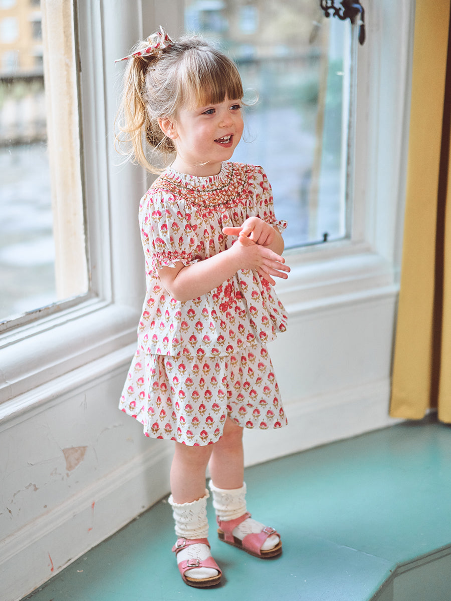 Kiera Hand Smocked Blouse, Printed Rosa White