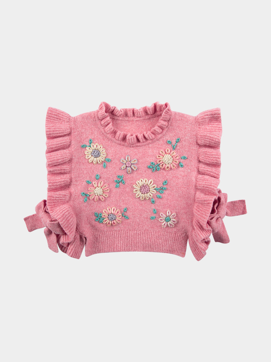 Leila Hand-Embroidered Knitted Vest, Grapefruit Pink
