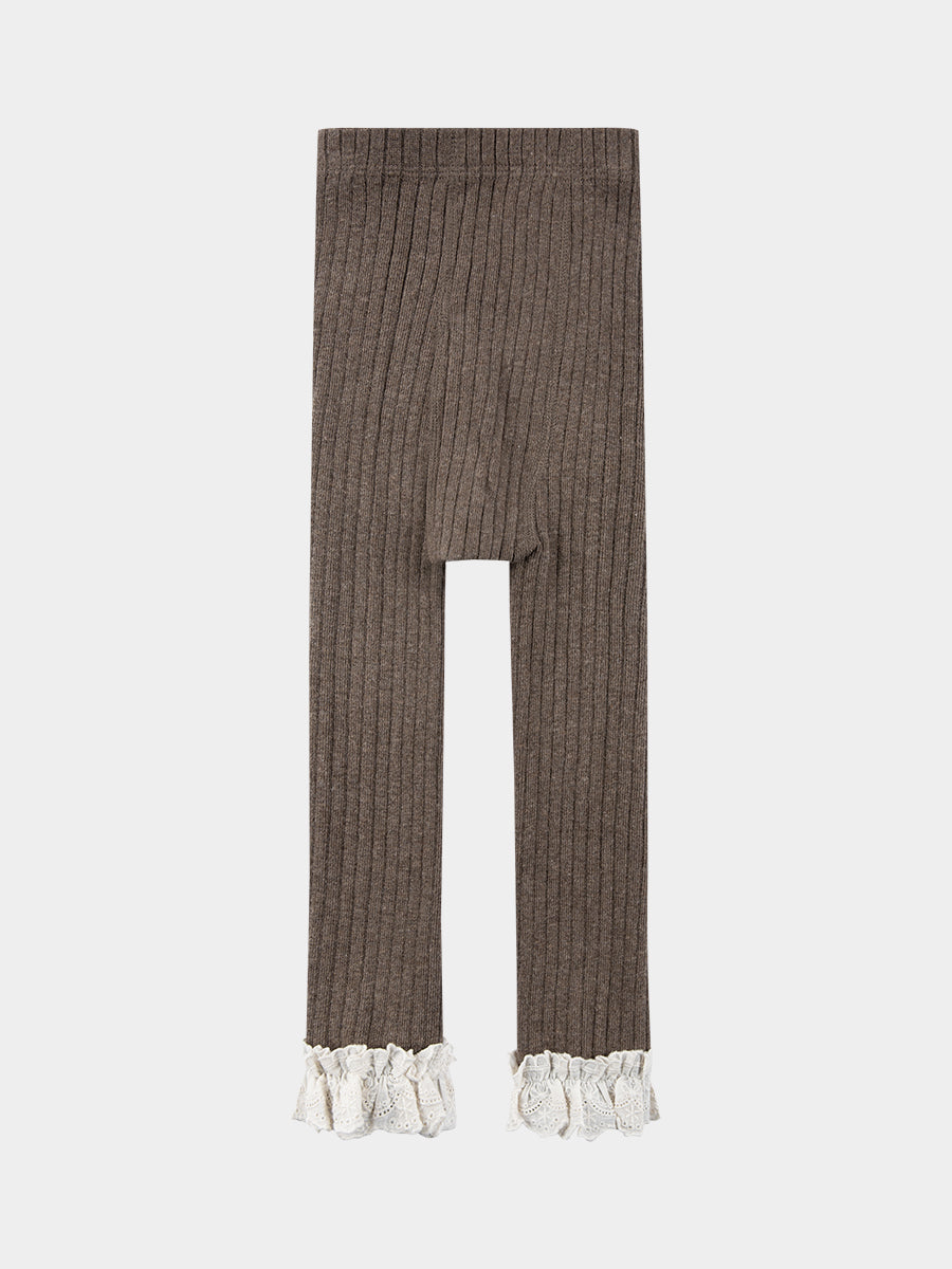 Lace Ruffle Organic Cotton Leggings, Coco Brown