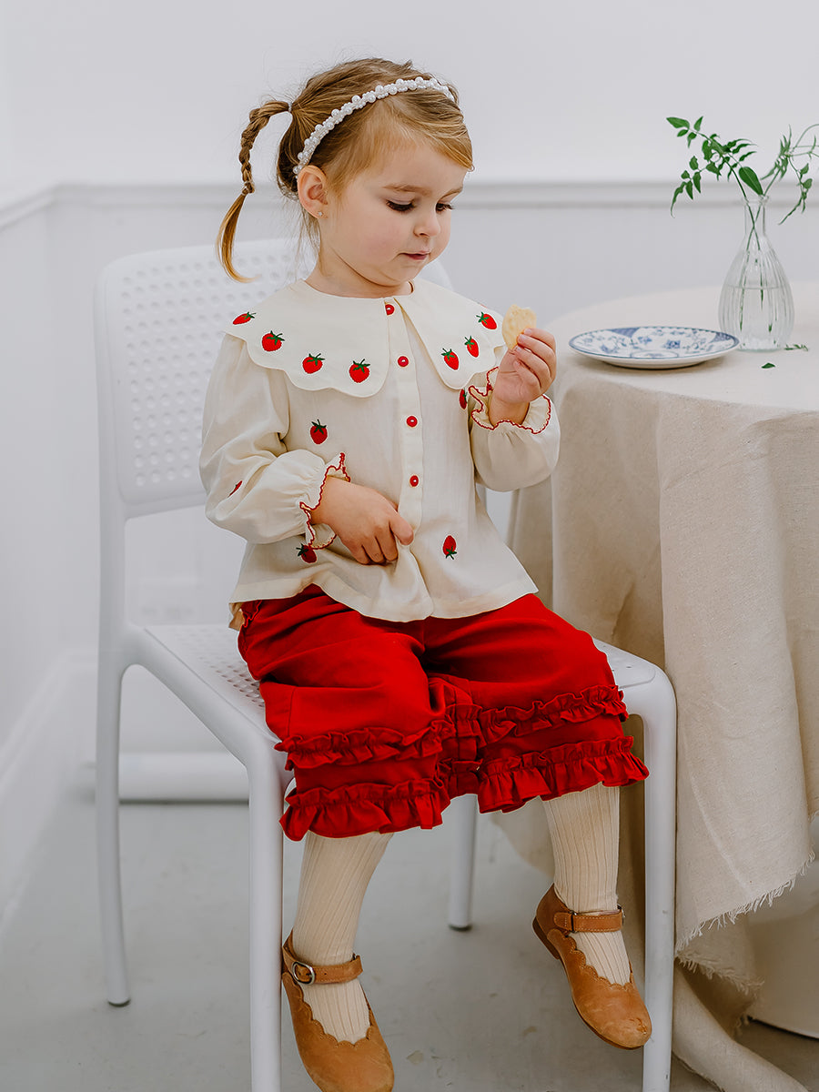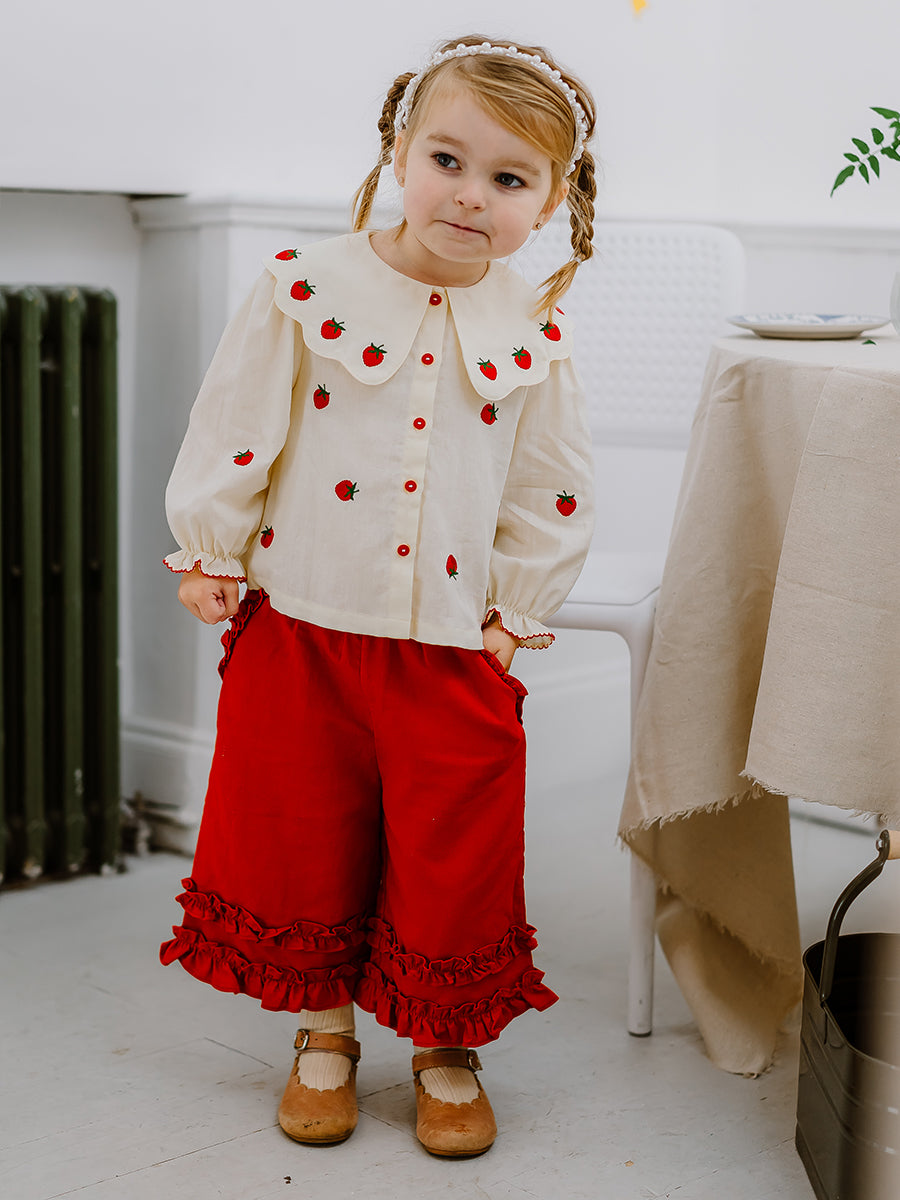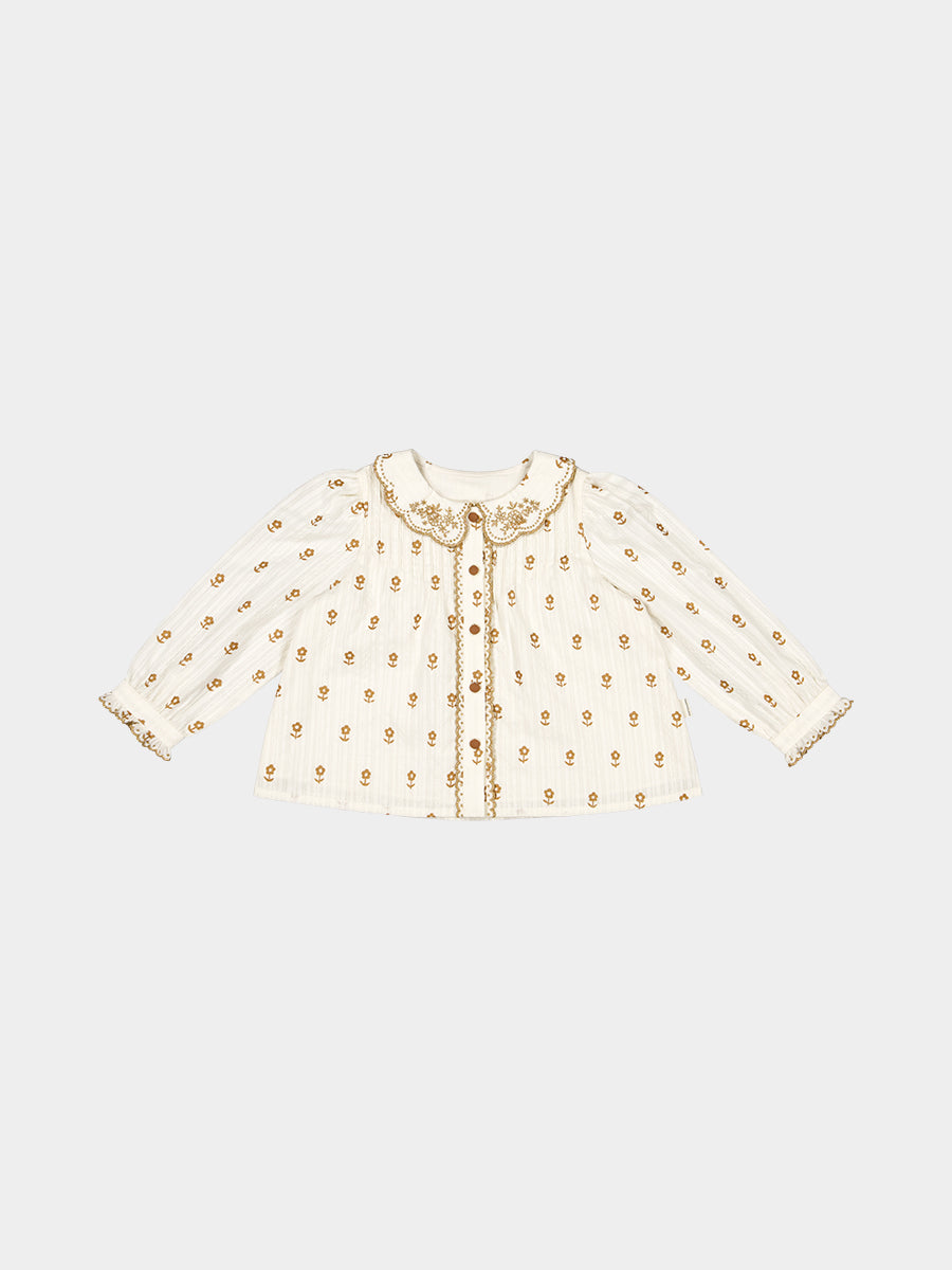 Winchester Embroidered Blouse, Wood Block Flower, Cream