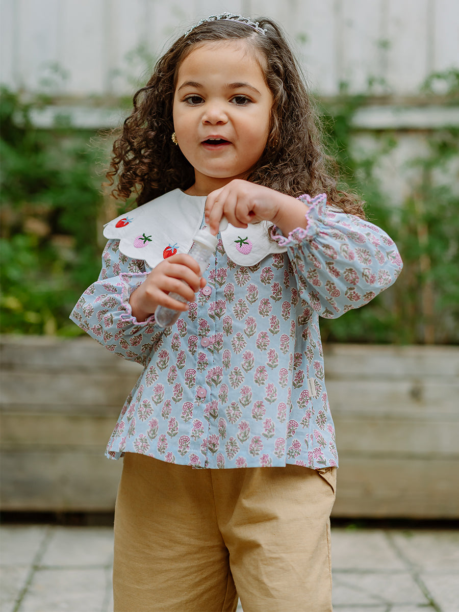 Siena Hand-Embroidered Blouse, Ocean Blue