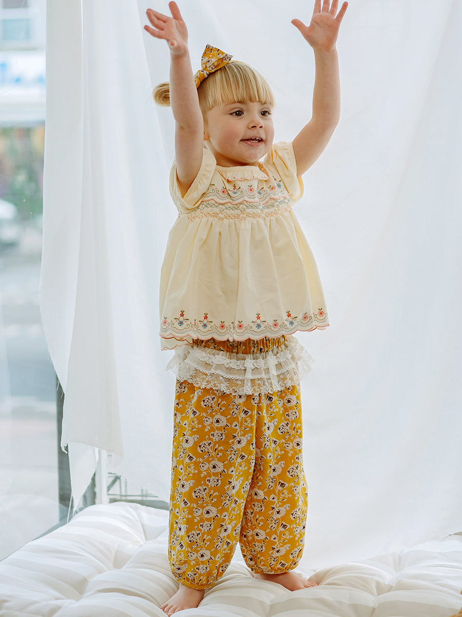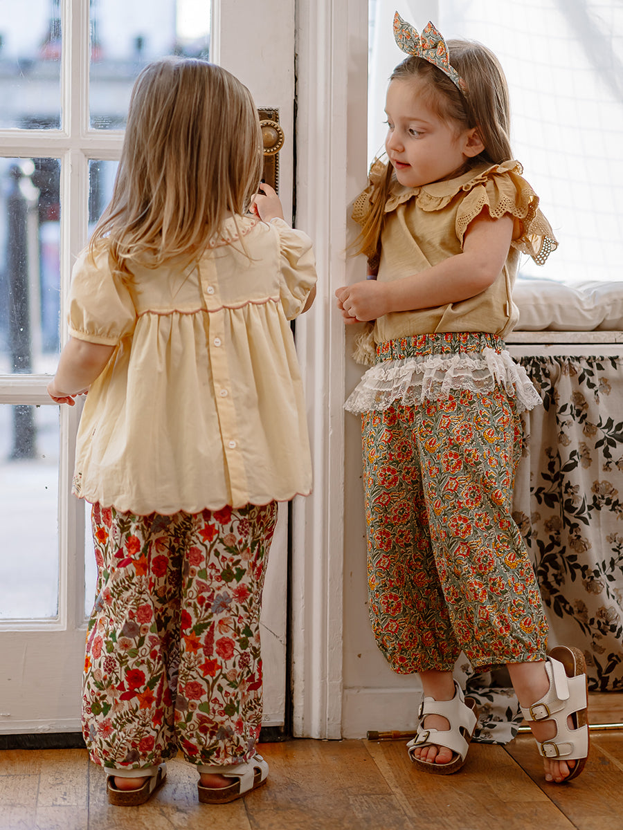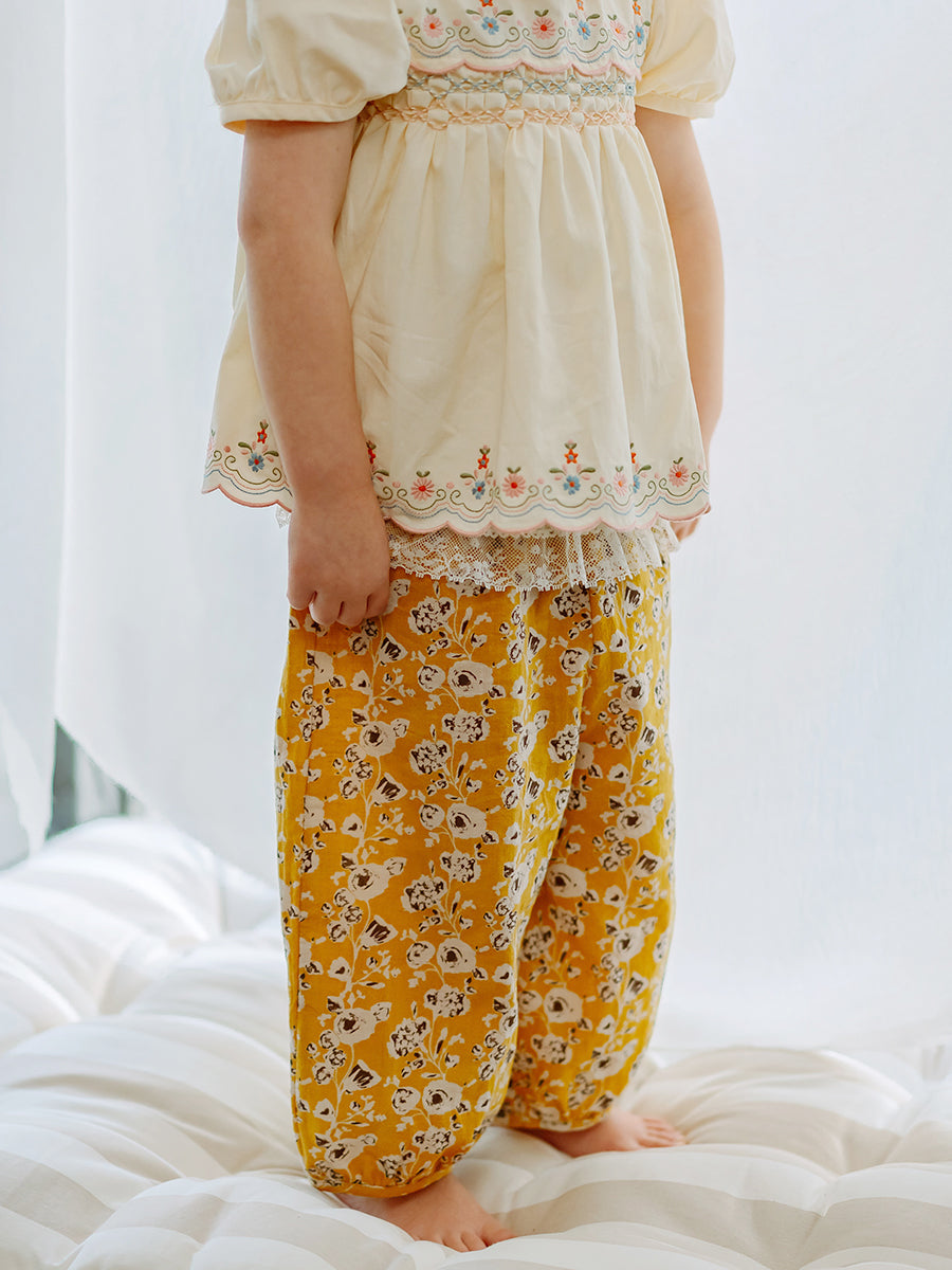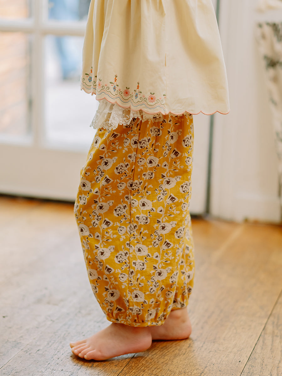 Valladolid Trousers, Happy Peony, Yellow