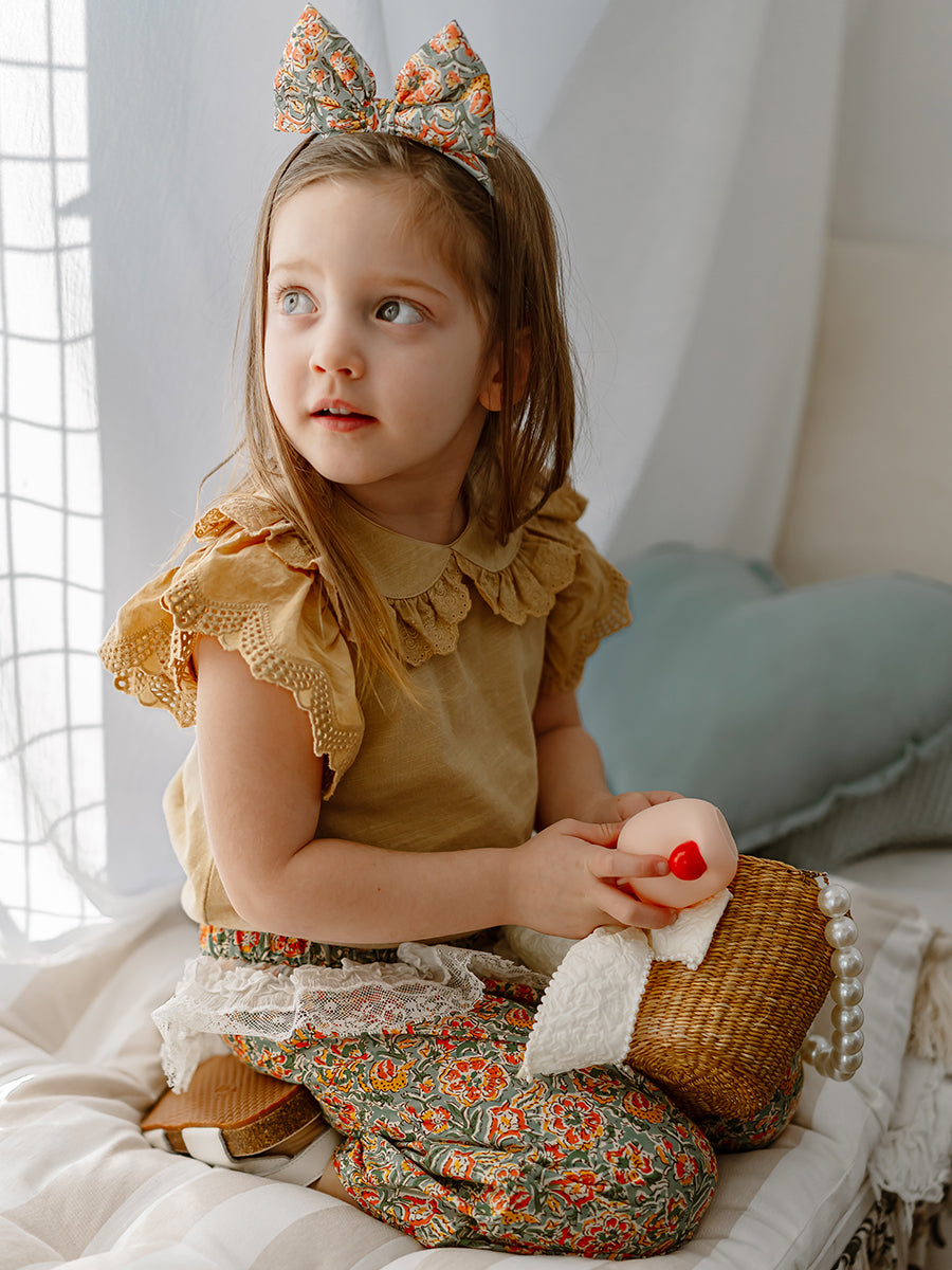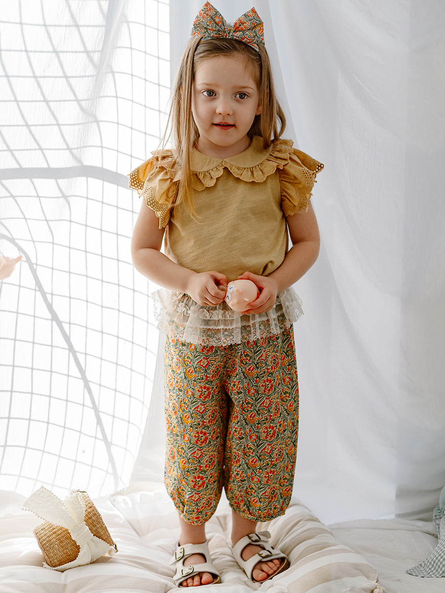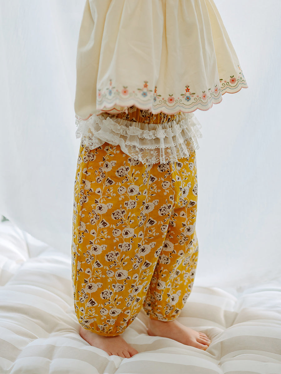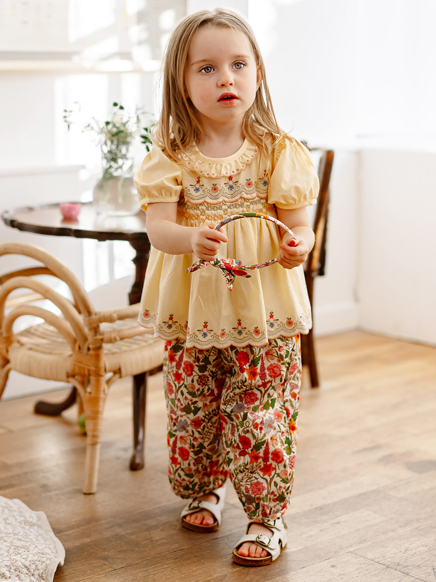 Valladolid Trousers, Happy Peony, Yellow