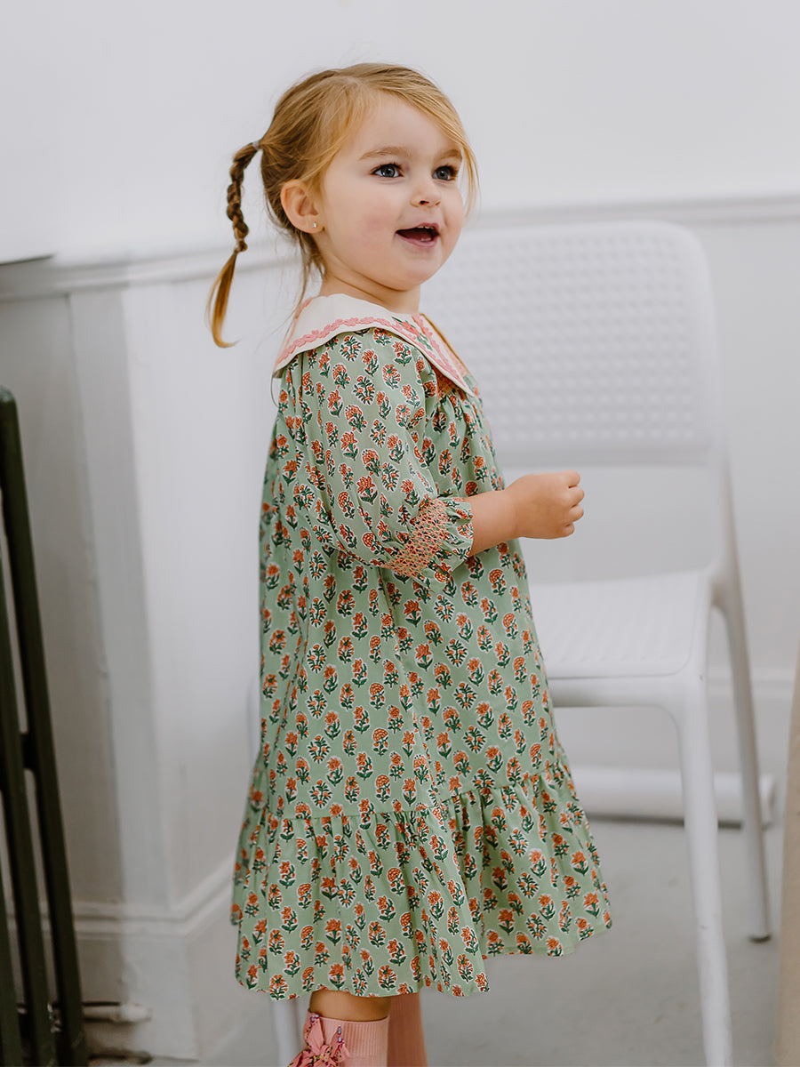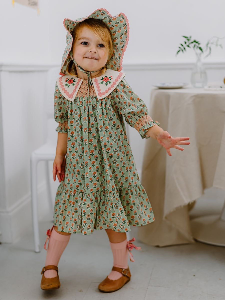 Copenhagen Embroidered Dress, Spring Delight, Green