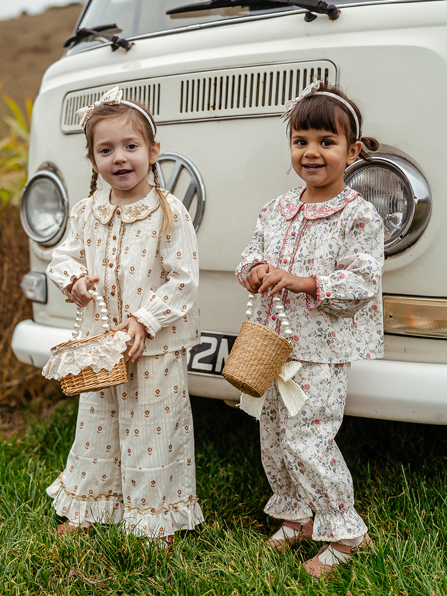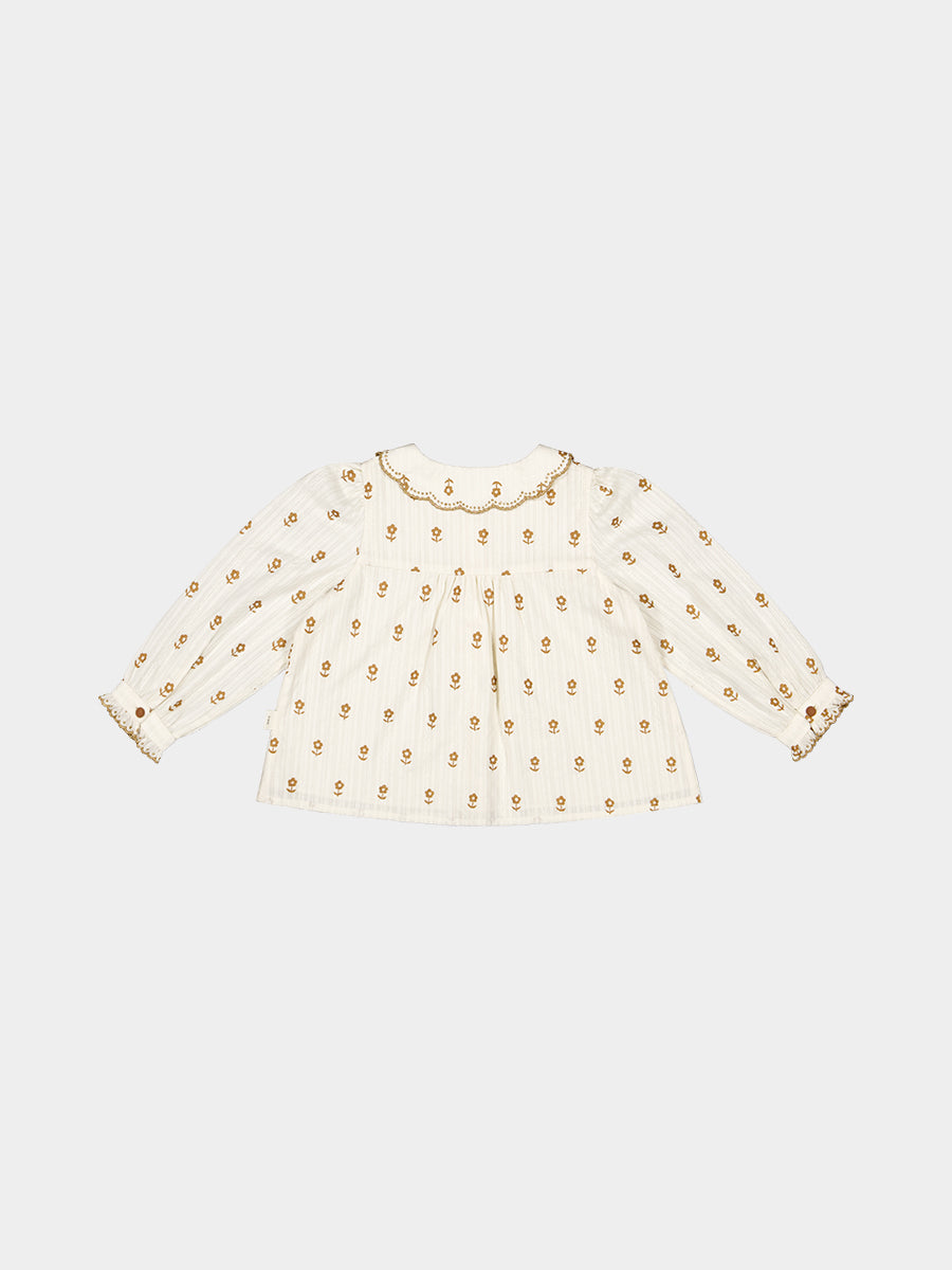 Winchester Embroidered Blouse, Wood Block Flower, Cream