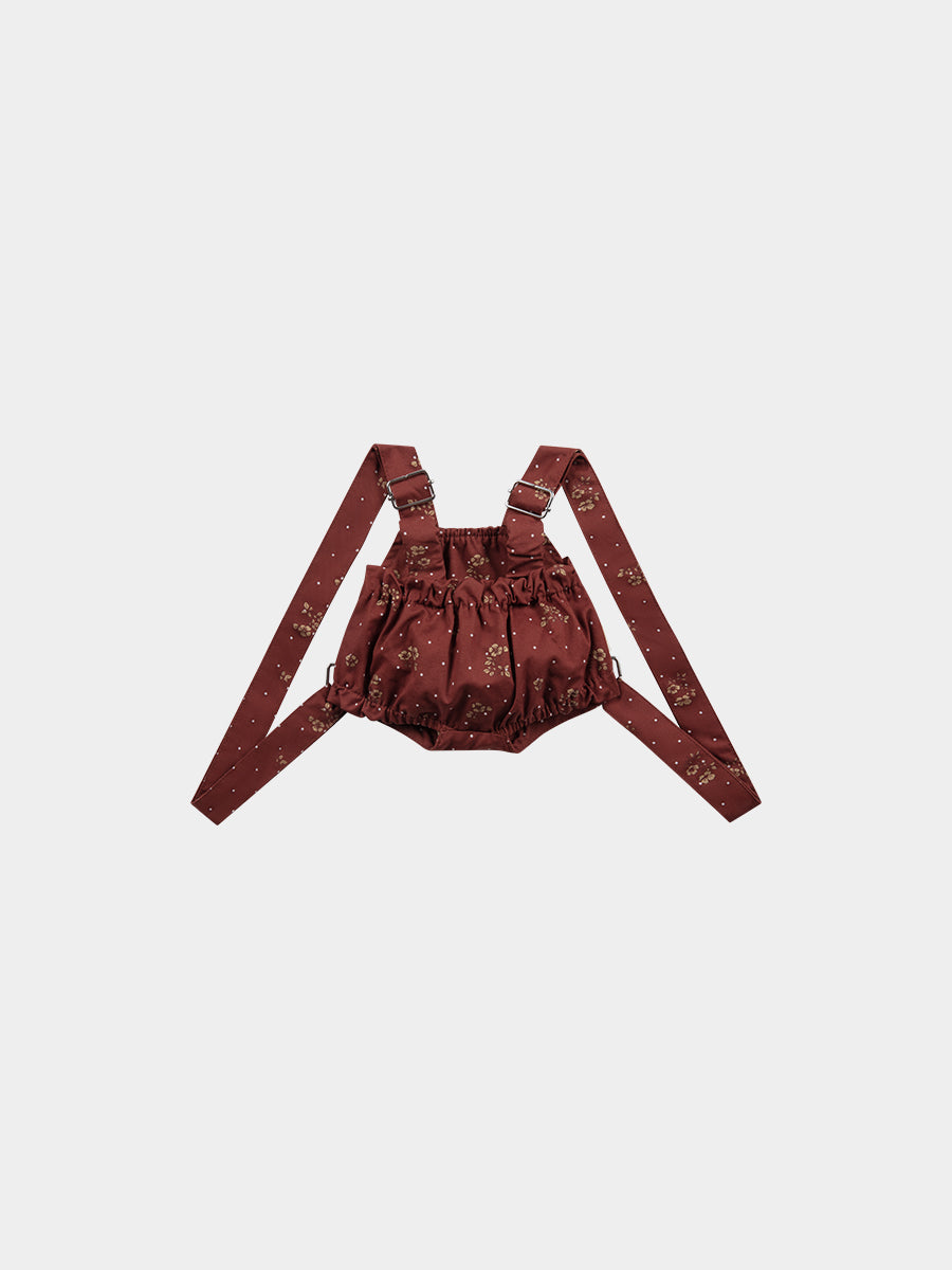 Teddy Bear Overall Shorts, Wildflower Polka, Burgundy