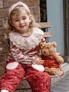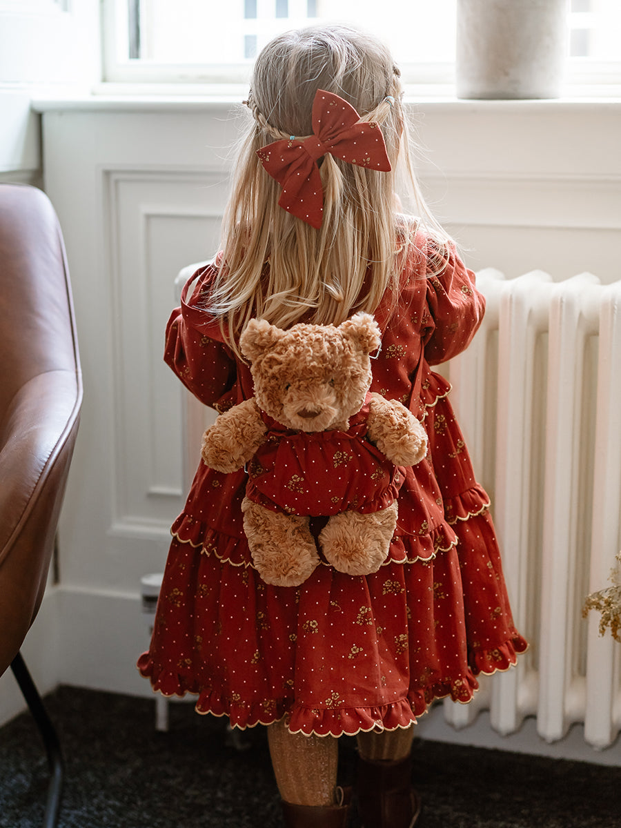 Teddy Bear Overall Shorts, Wildflower Polka, Burgundy
